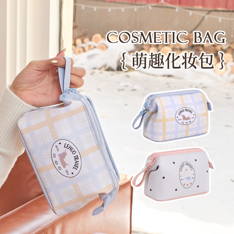 可爱p人化妆包女便携式旅行懒人大容量护肤品收纳袋魔术贴百贴布
