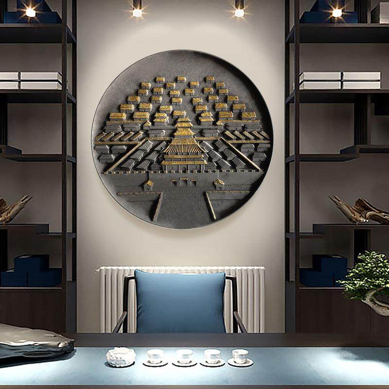 新中式立体浮雕招财风水画客厅走廊过道现代中国风挂画玄关装饰画