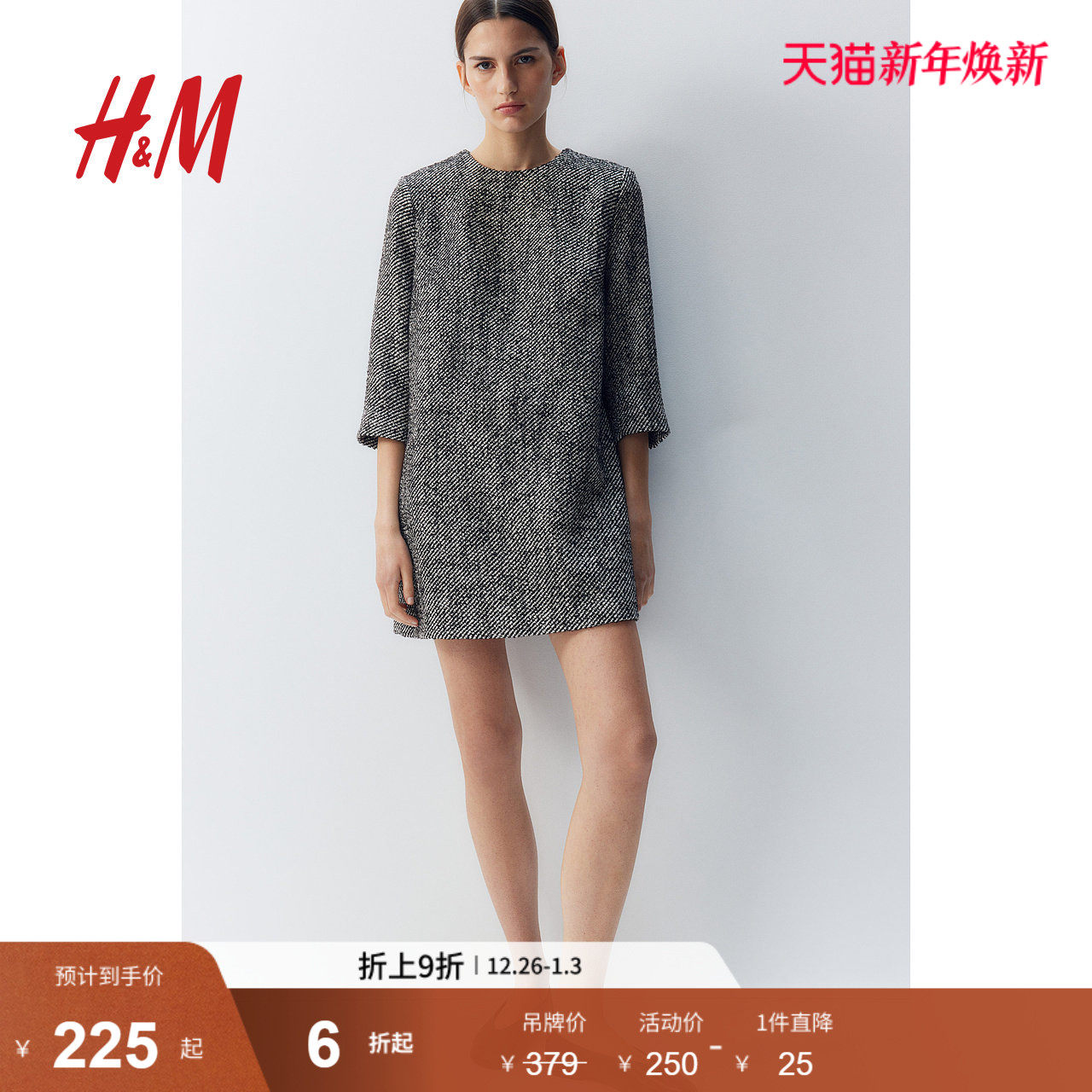 HM冬季女士圈绒A字连衣裙1268037