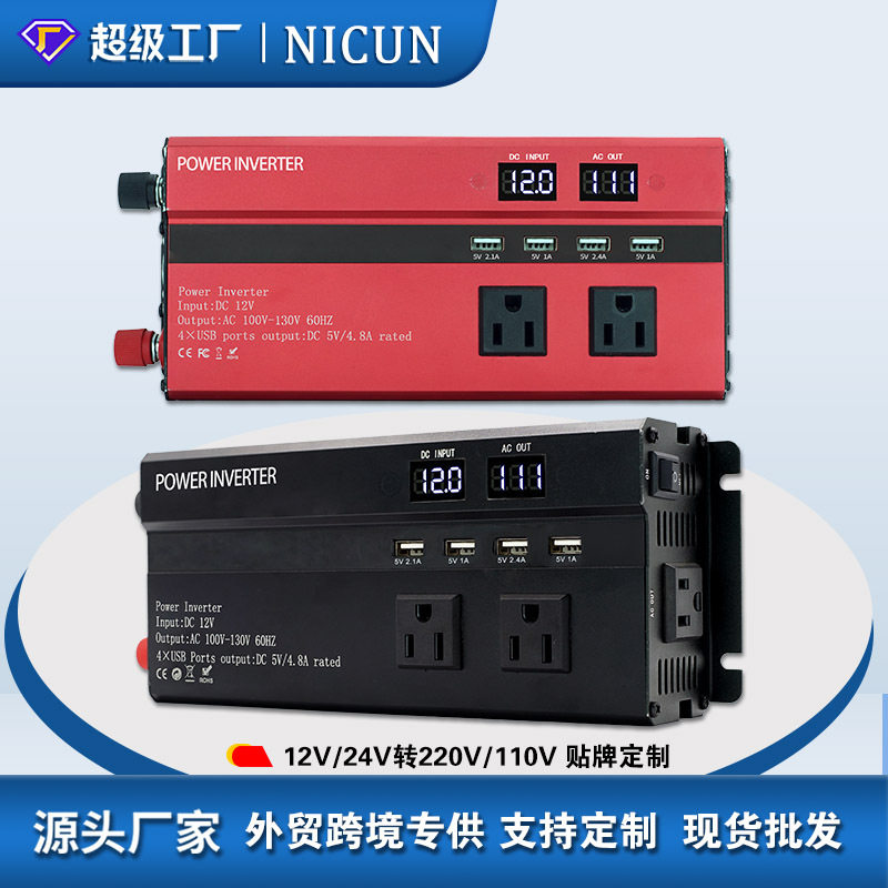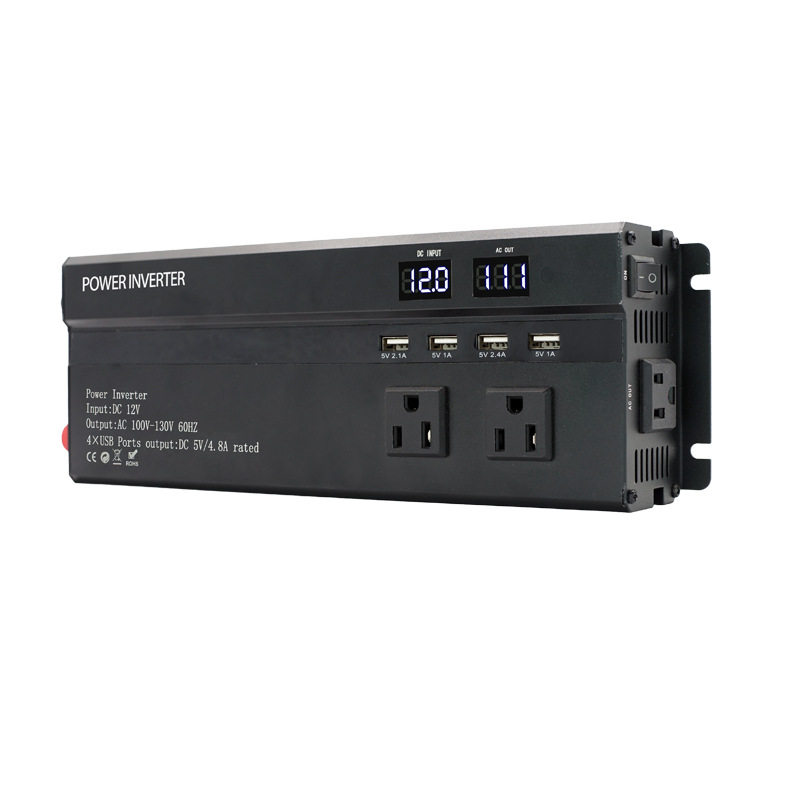 跨境专供美规双显多插座转换器USB12V24V转110车载家用露营逆变器