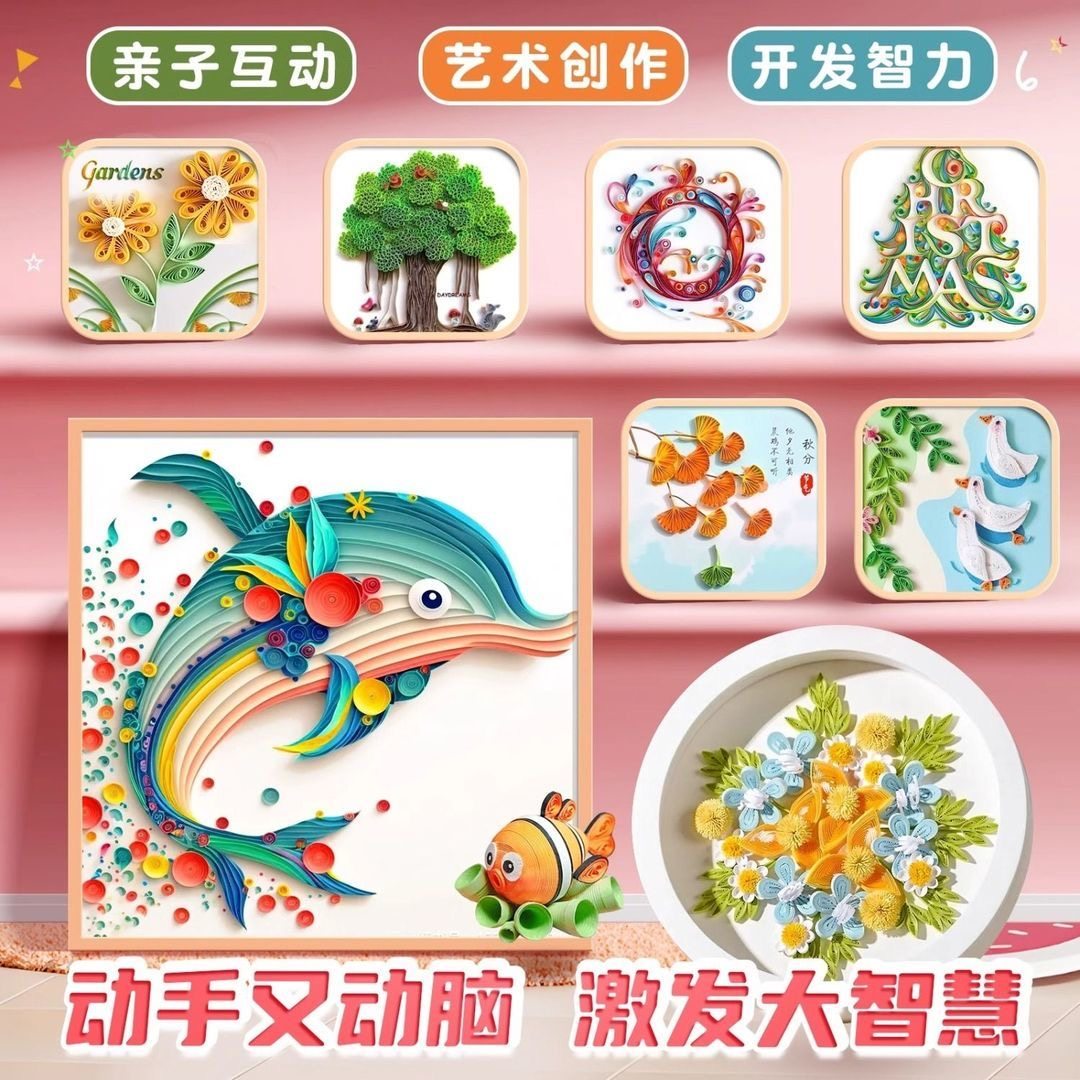 衍纸初学者套装手工DIY材料包衍纸画幼儿园工具包小学生模板书签纸条作品线稿图衍电动基础套餐精英