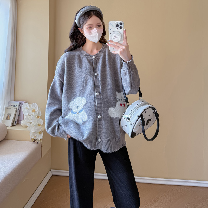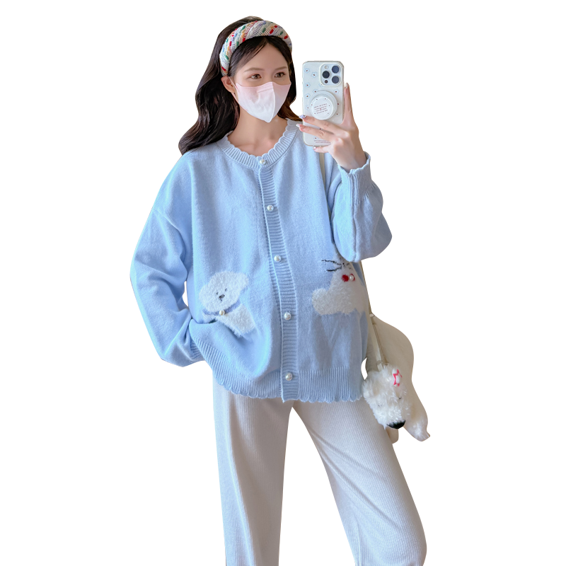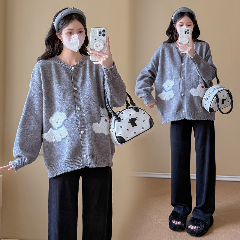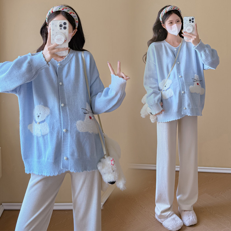 婧麒秋季孕妇套装2025新款孕妈洋气时髦针织开衫外套阔腿裤两件套