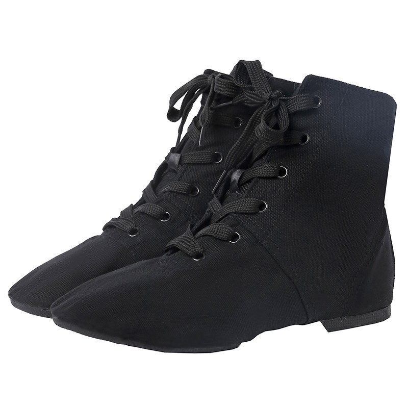 胶底帆布成人高帮爵士靴软底舞蹈鞋新款练功鞋女现代舞鞋舞鞋黑色