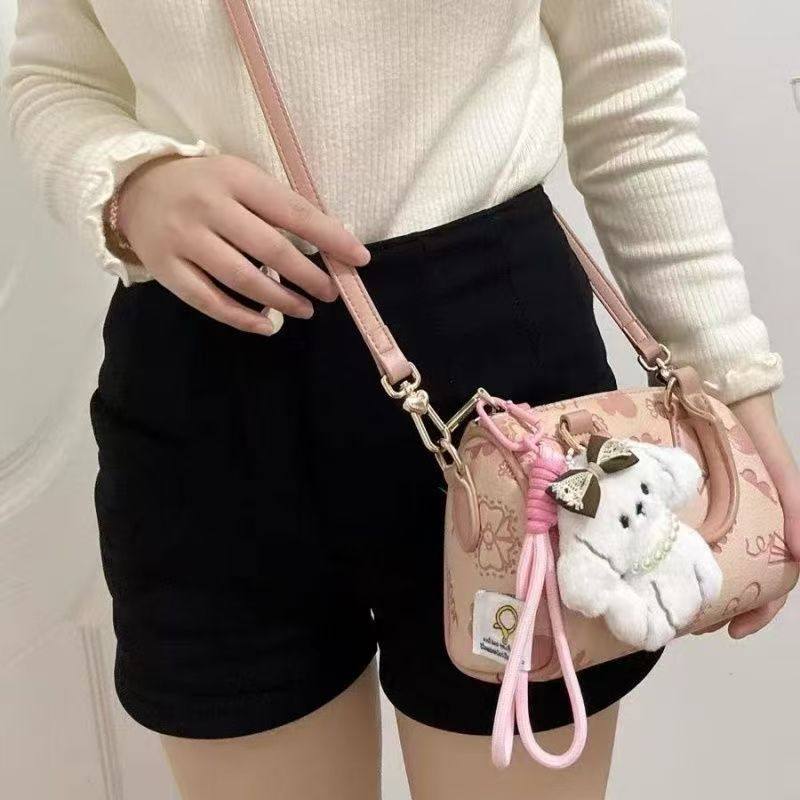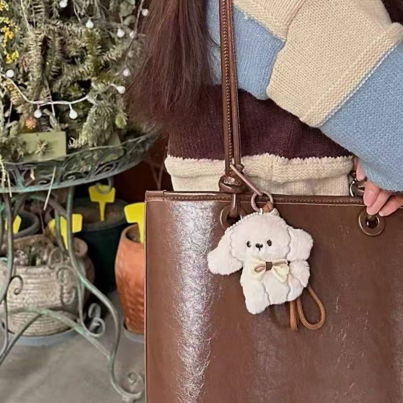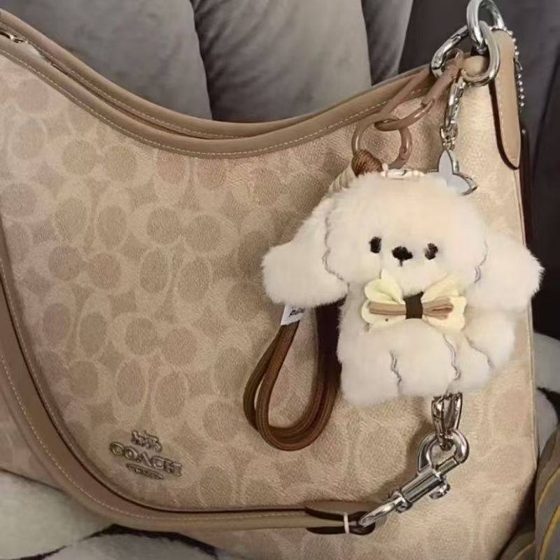 可爱比熊小狗毛绒公仔包包挂件情侣书包背包挂饰高级感车钥匙扣链