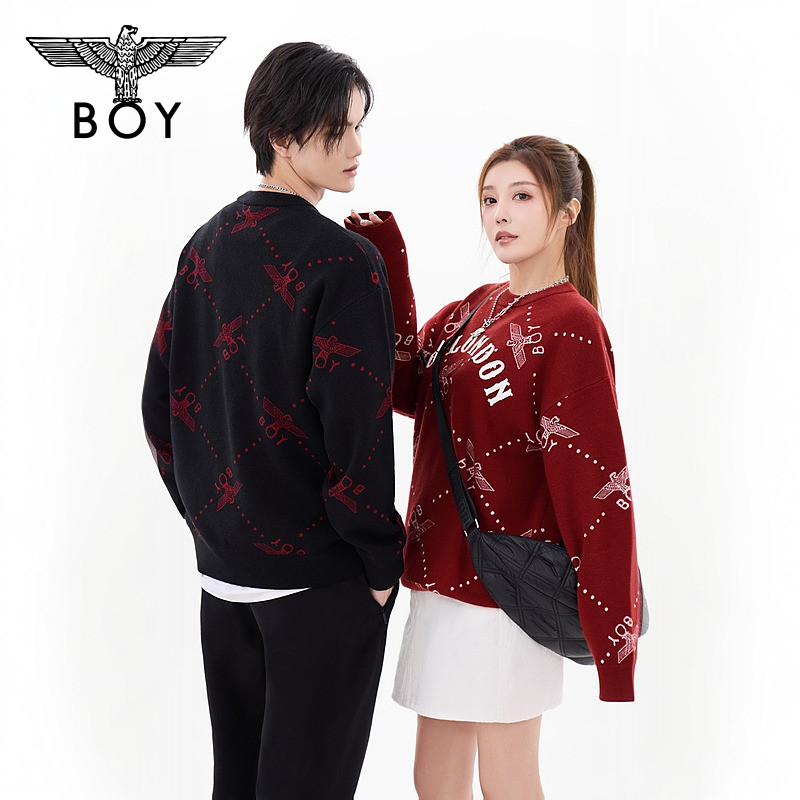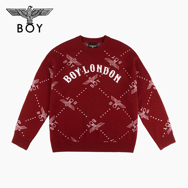 【红酒派对】BOYLONDON冬季情侣毛衣套头圆领酒红色上衣N60906