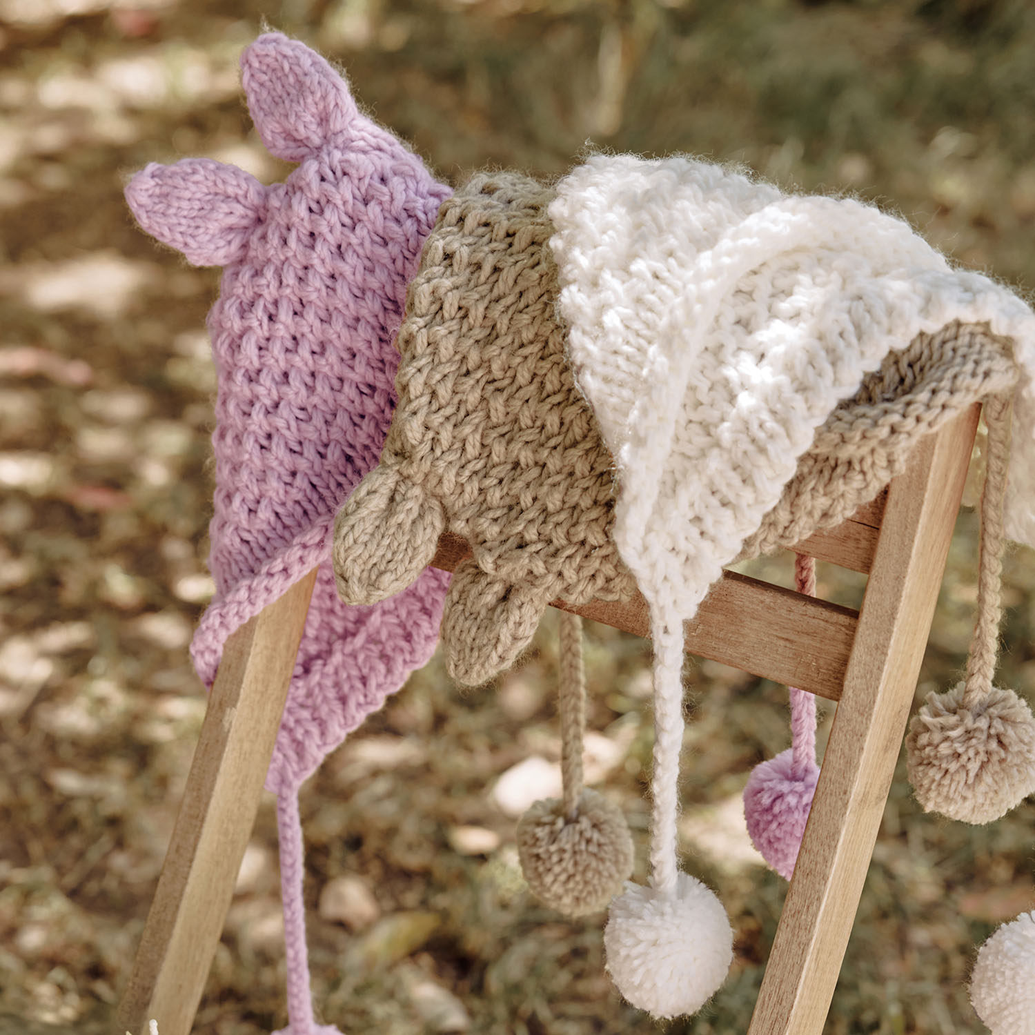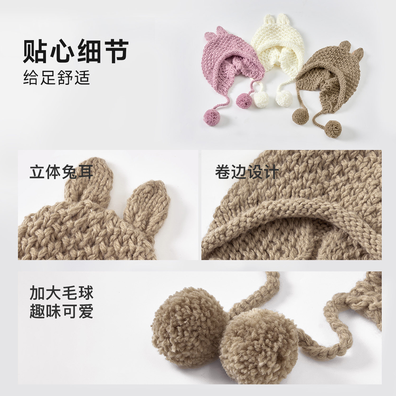 手工针织保暖舒适,萌趣可爱立体兔耳造型