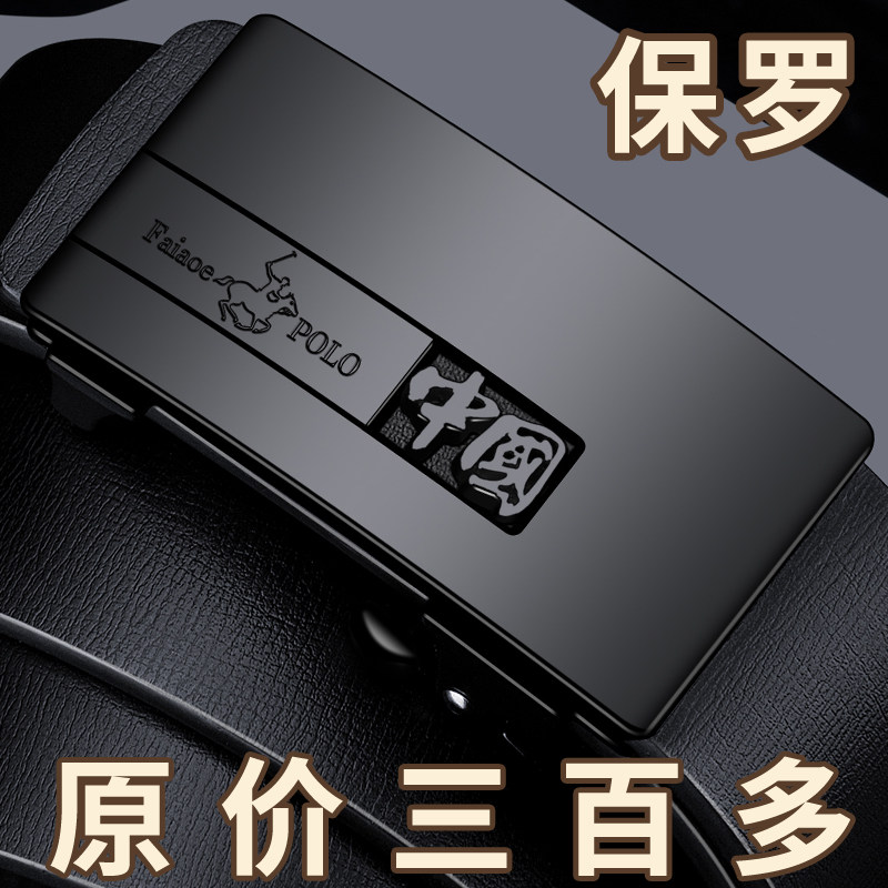 保罗正品皮带男士自动扣2025新款商务休闲纯牛皮裤带百搭真皮腰带