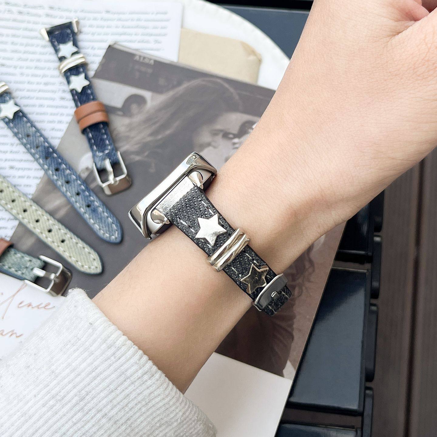 【铆钉星云】适用华为手环10手表带牛仔布星星9/8/7NFC赛博朋克荣耀10/9创意运动配件秋冬男女款腕带Huawei