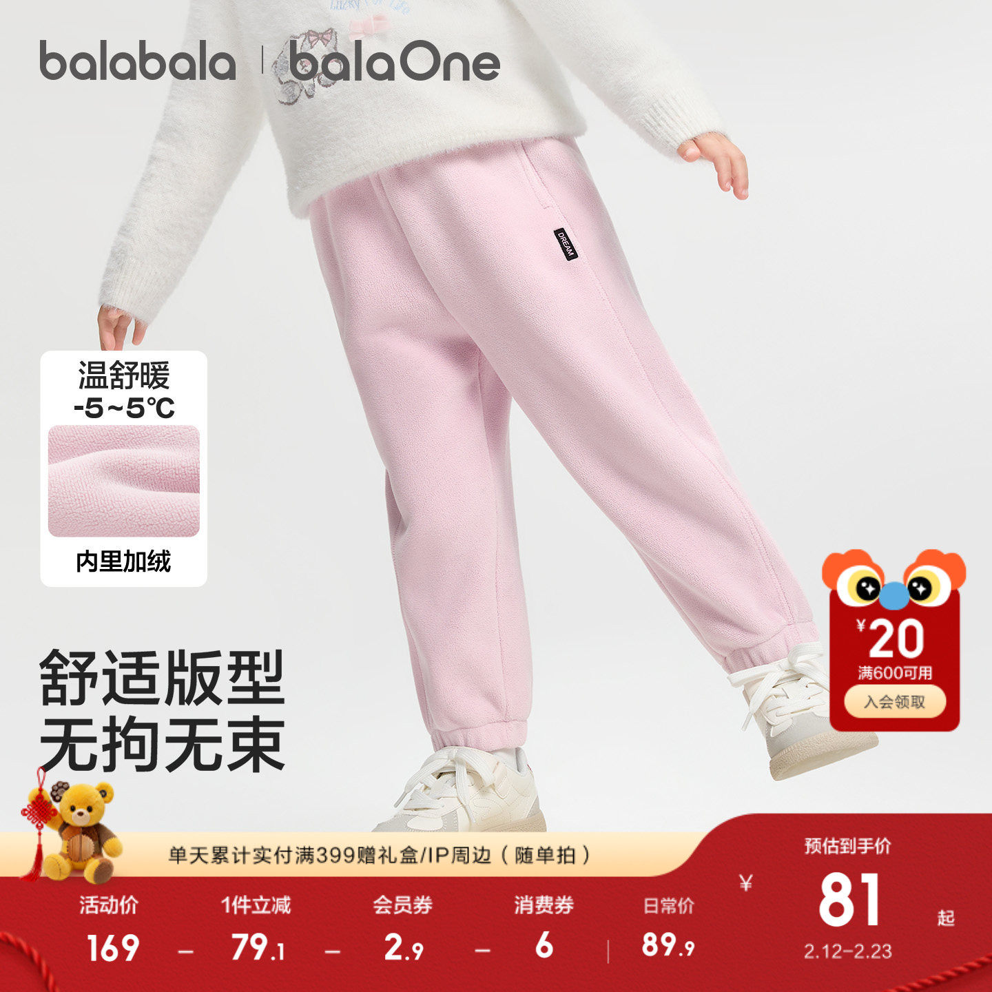 巴拉巴拉童装儿童加绒裤子男童2025秋冬新款女童防静电摇粒绒长裤