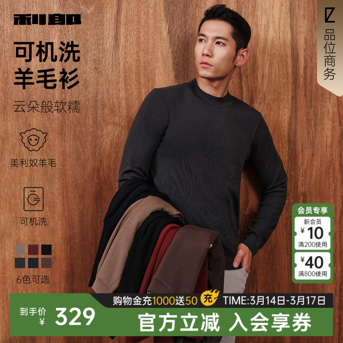 【可机洗羊毛】利郎官方毛衫男士休闲半高领冬季新款保暖毛衣