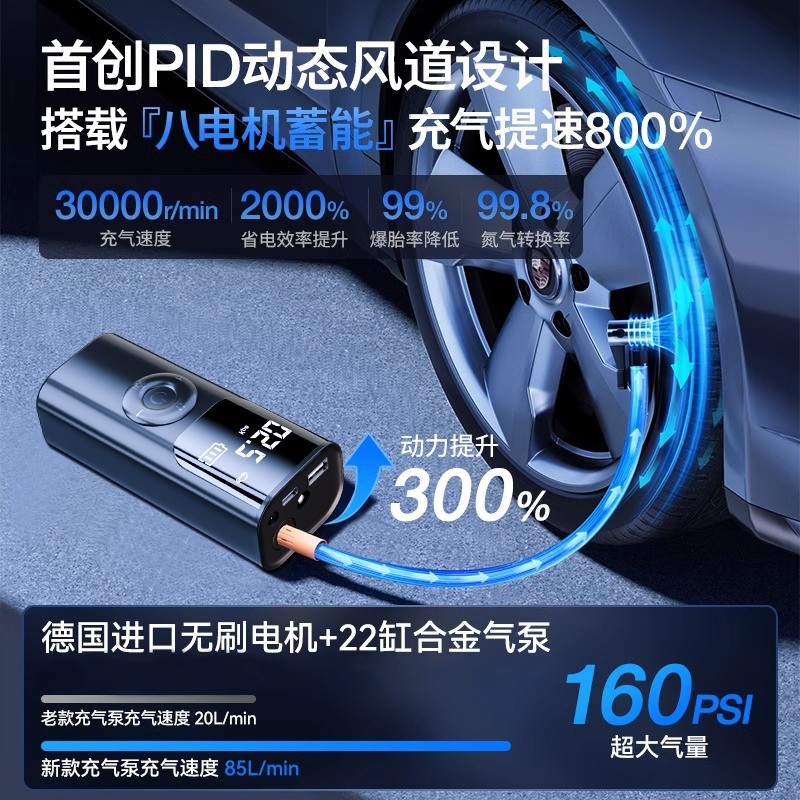 车载充气泵便携式汽车用电动打气筒氮气轮胎带测胎压小型自动加气