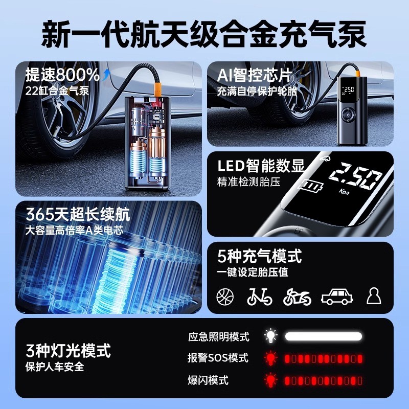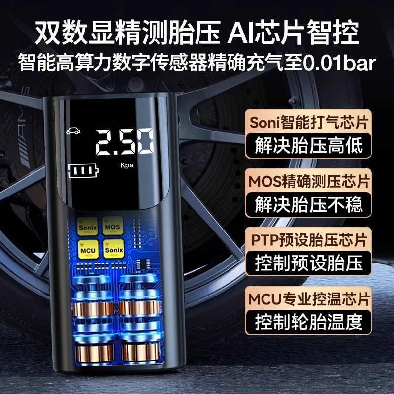 车载充气泵无线便携式高压打气泵汽车轮胎电动打气筒车用带测胎压