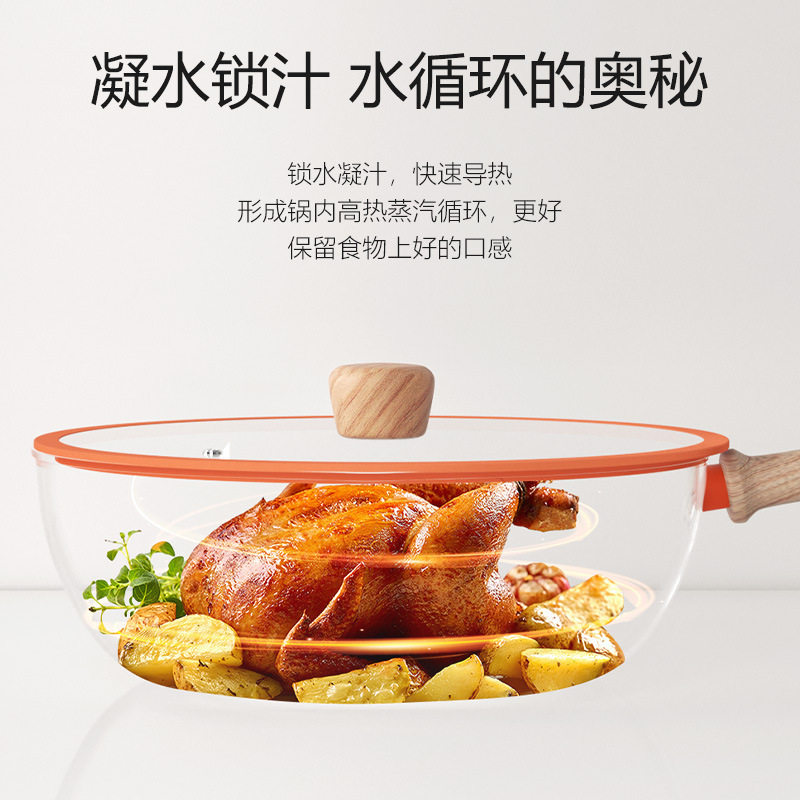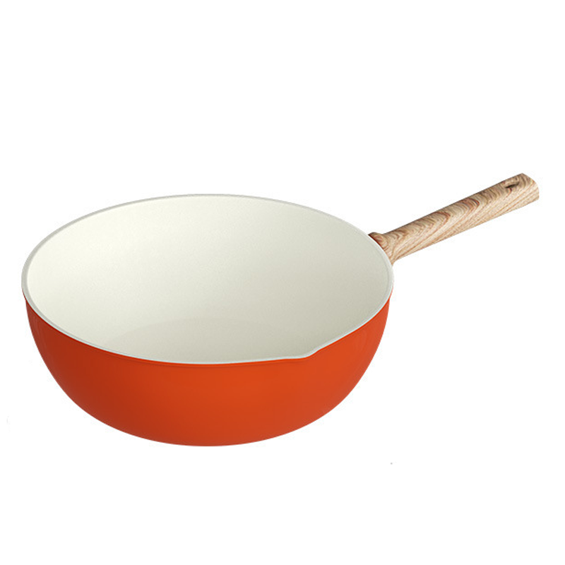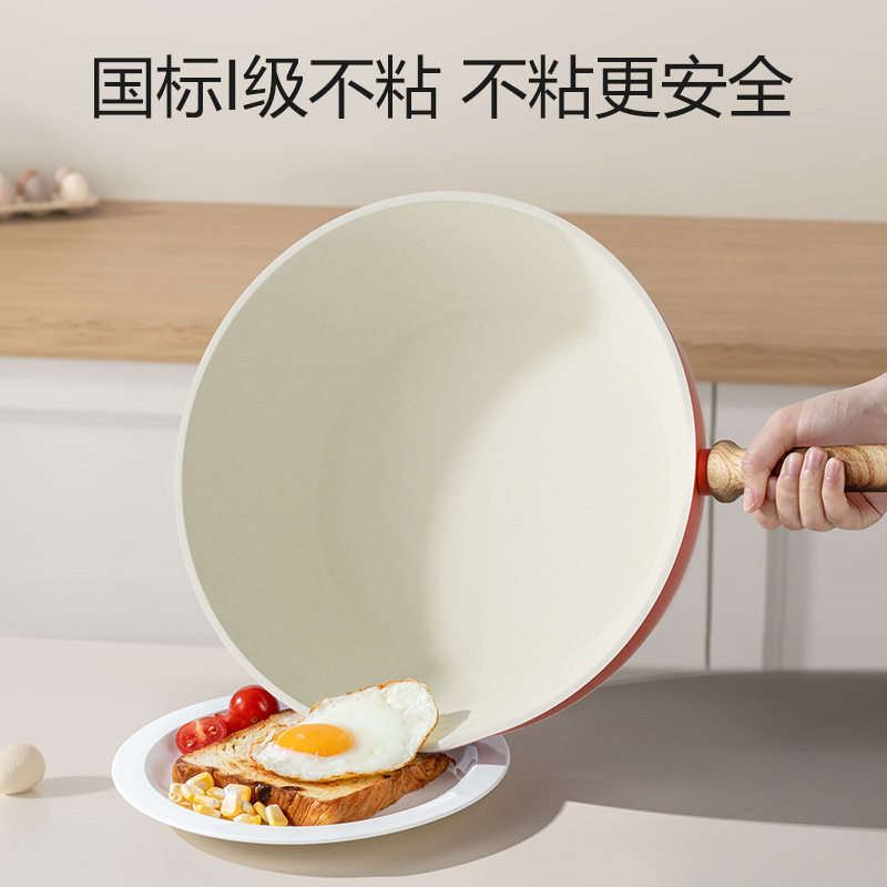 新款0氟涂层不粘锅多规格西柚红陶瓷煎炒锅多功能锅通用炉灶平底