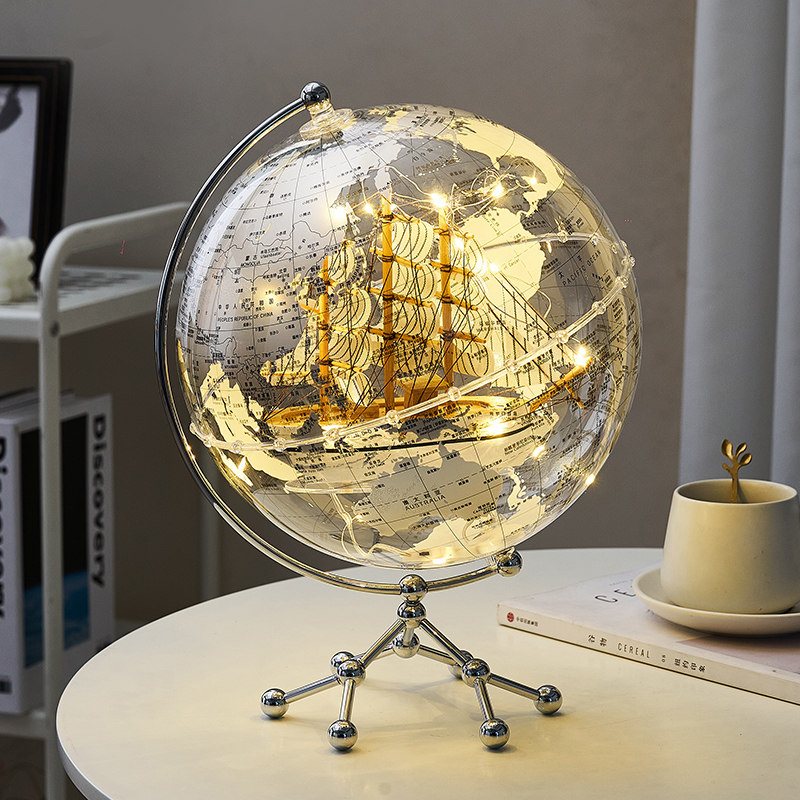 透明地球仪摆件轻奢高档高级感客厅玄关酒柜子桌面摆设卧室可发光