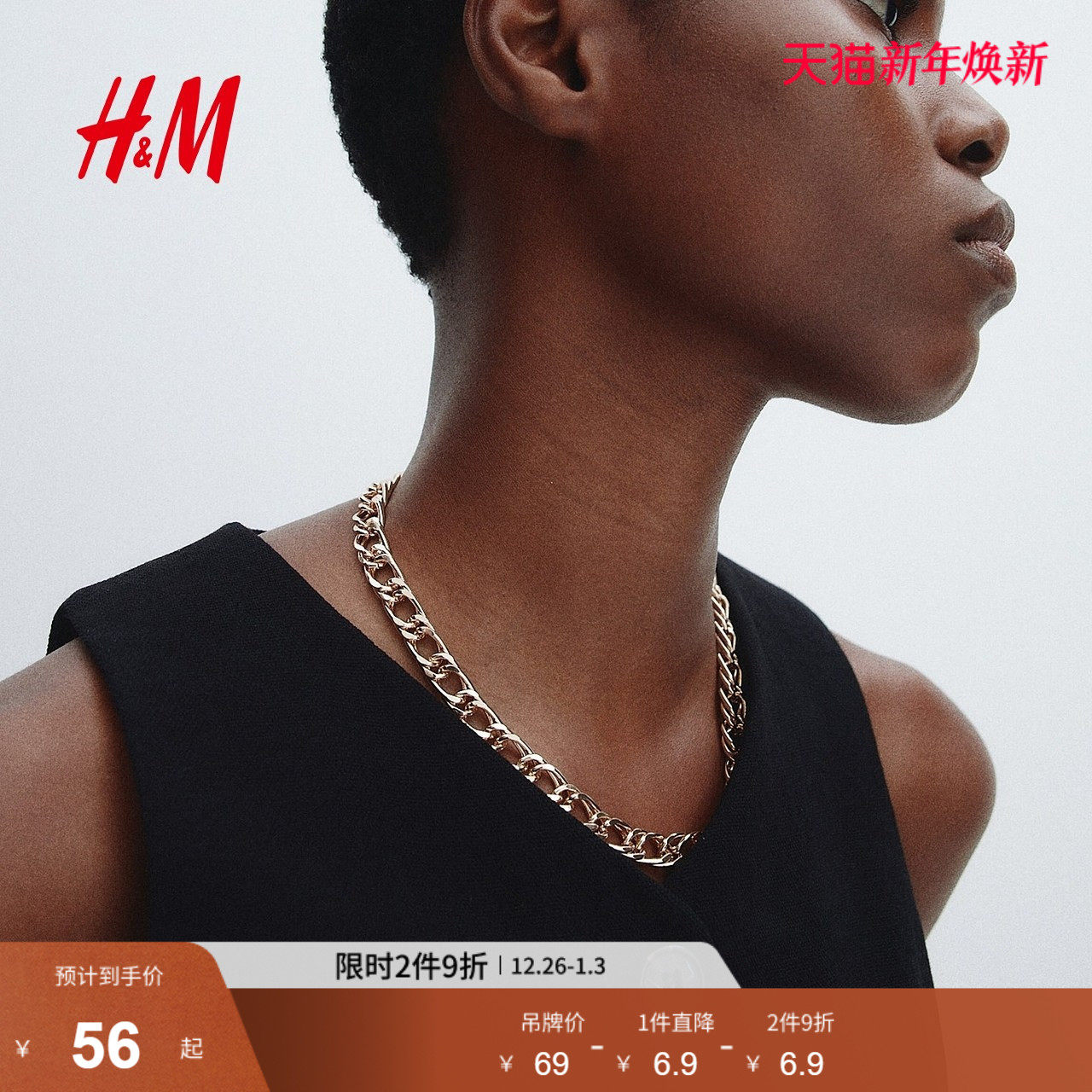 HM女装饰品2025年冬季新款链式项链1306679