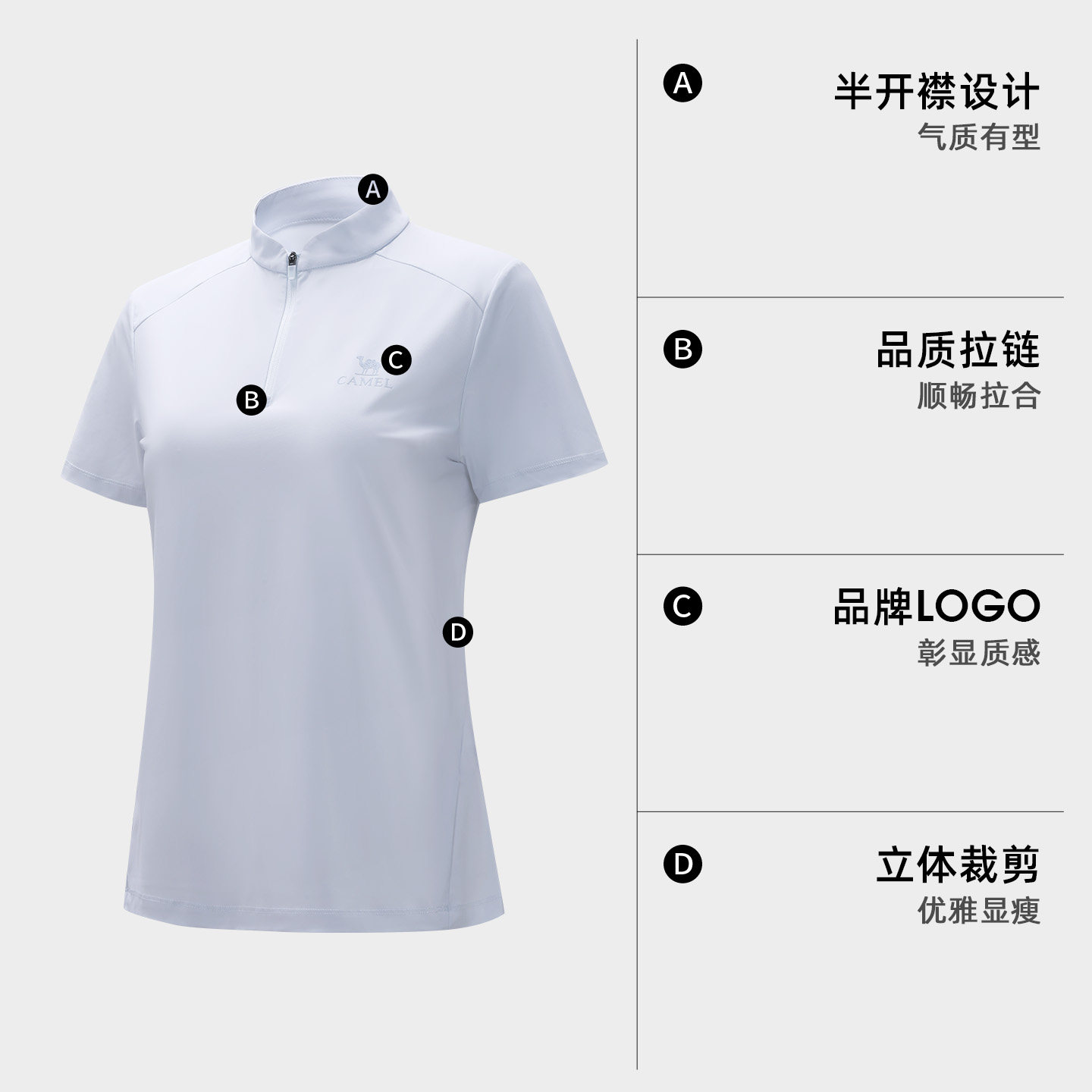 【冰T】骆驼女装凉感立领T恤夏季新款透气速干原纱防晒休闲上衣女