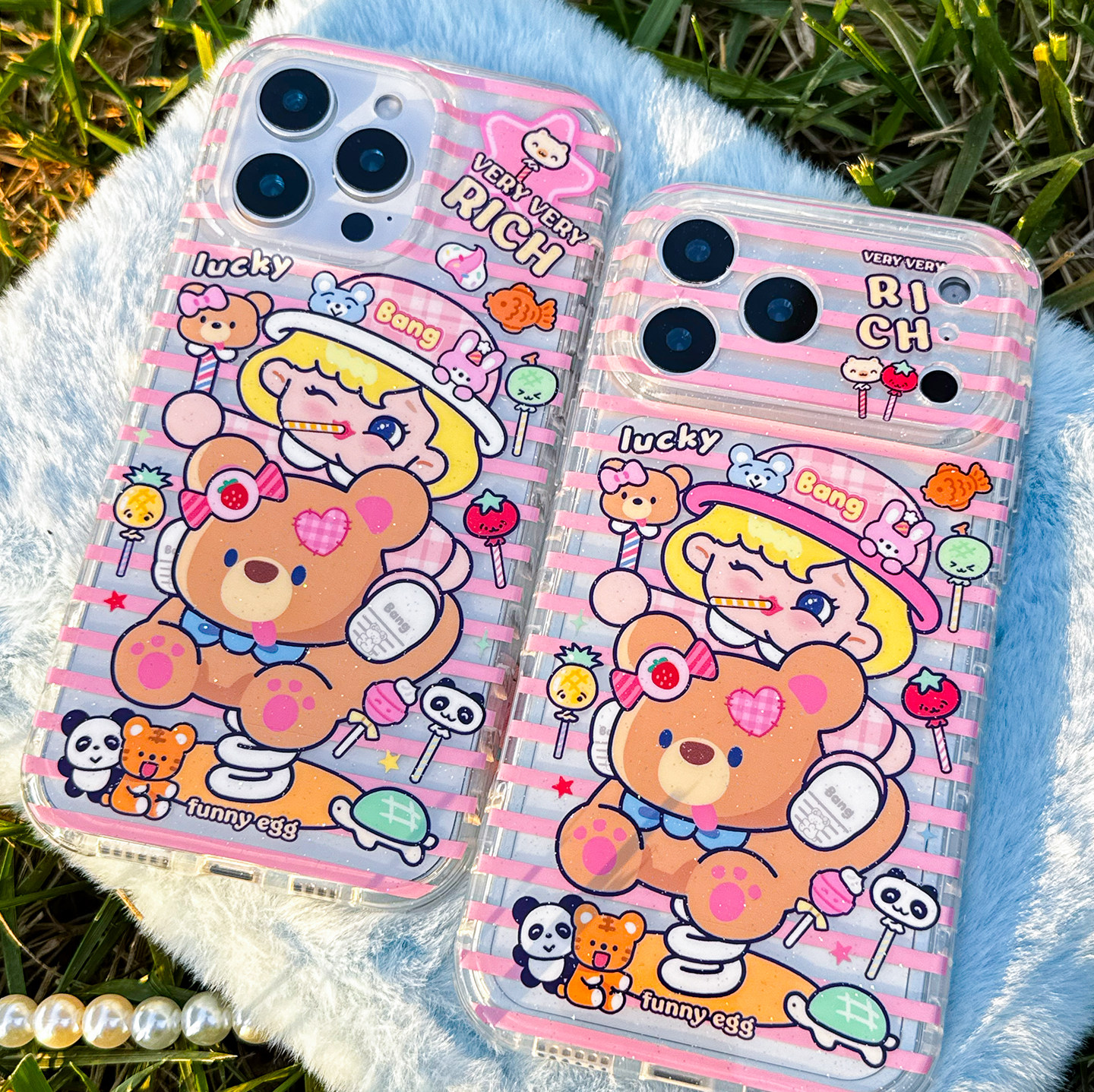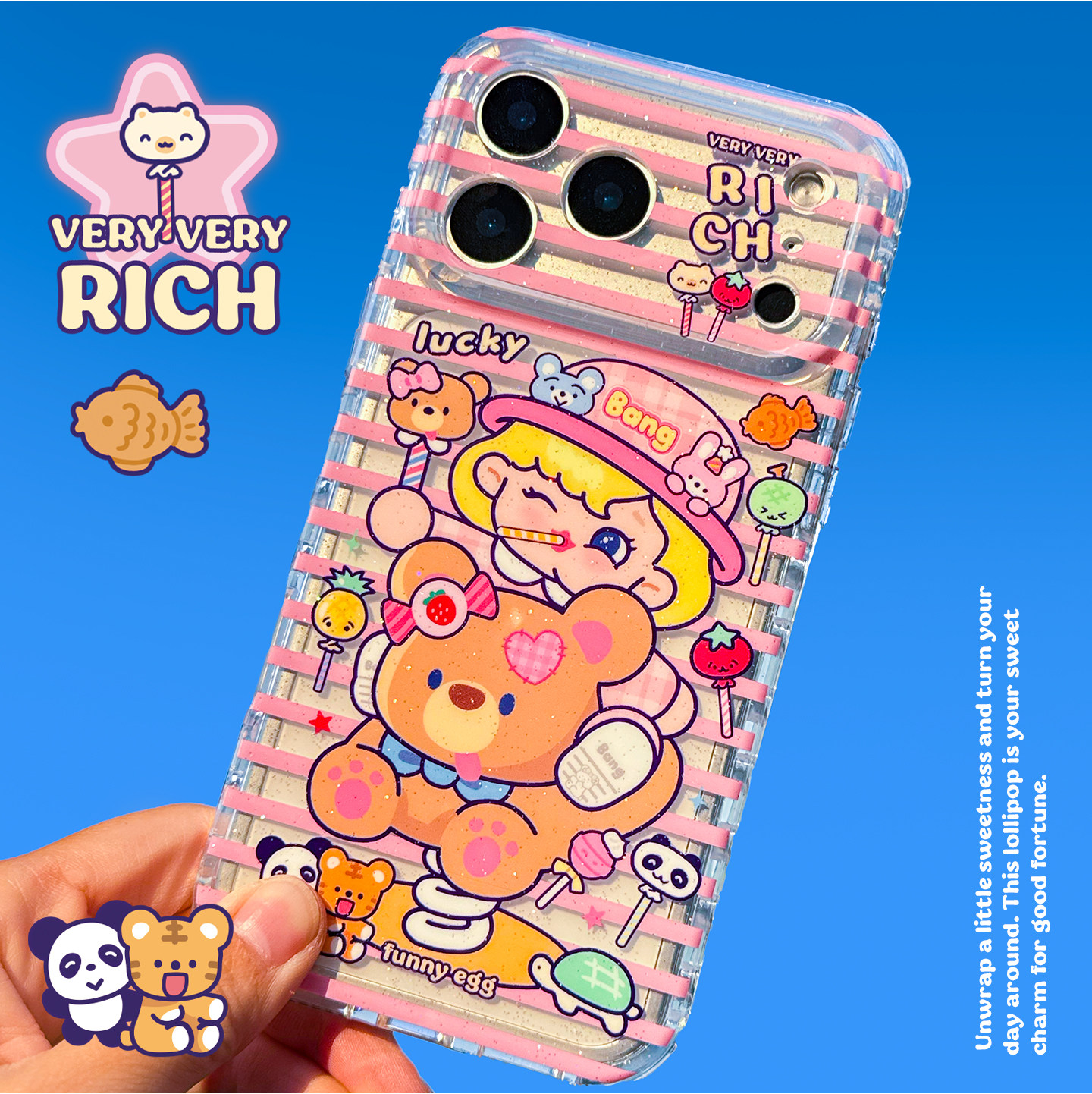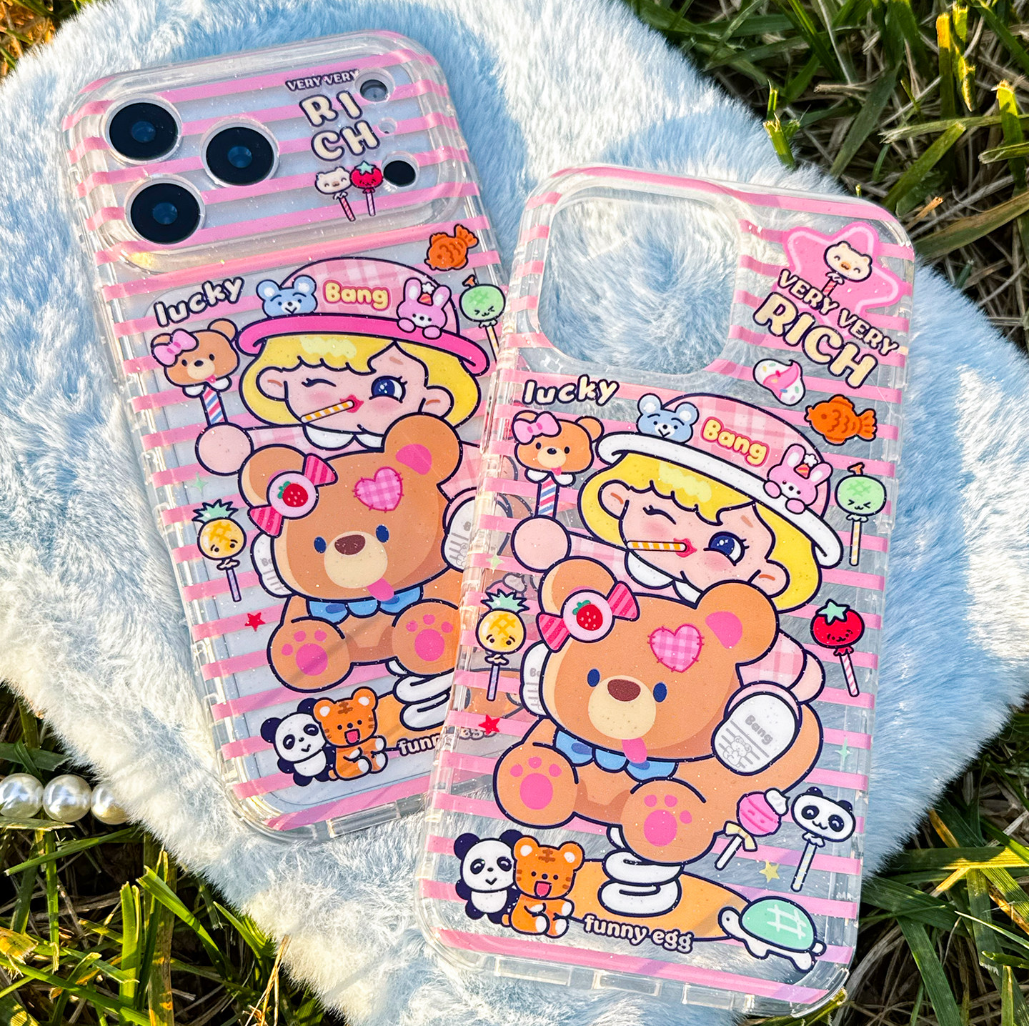 半熟玉子商店原创棒棒女孩条纹手机壳适用苹果15pro iphone16proMax 亮面imd粉色可爱卡日系甜美女