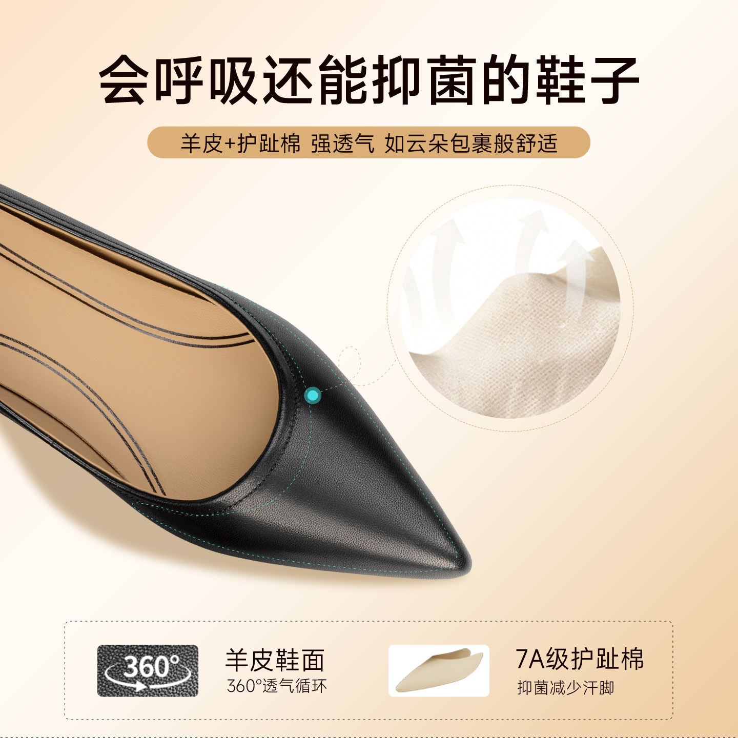 【静音系列】千百度粗高跟鞋羊皮浅口法式单鞋异形跟职业通勤大码