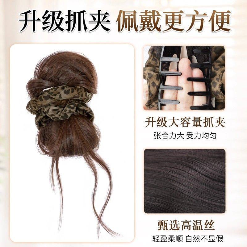 丸子头假发抓夹女慵懒感豹纹低丸子头一体式盘发神器增发量假发包