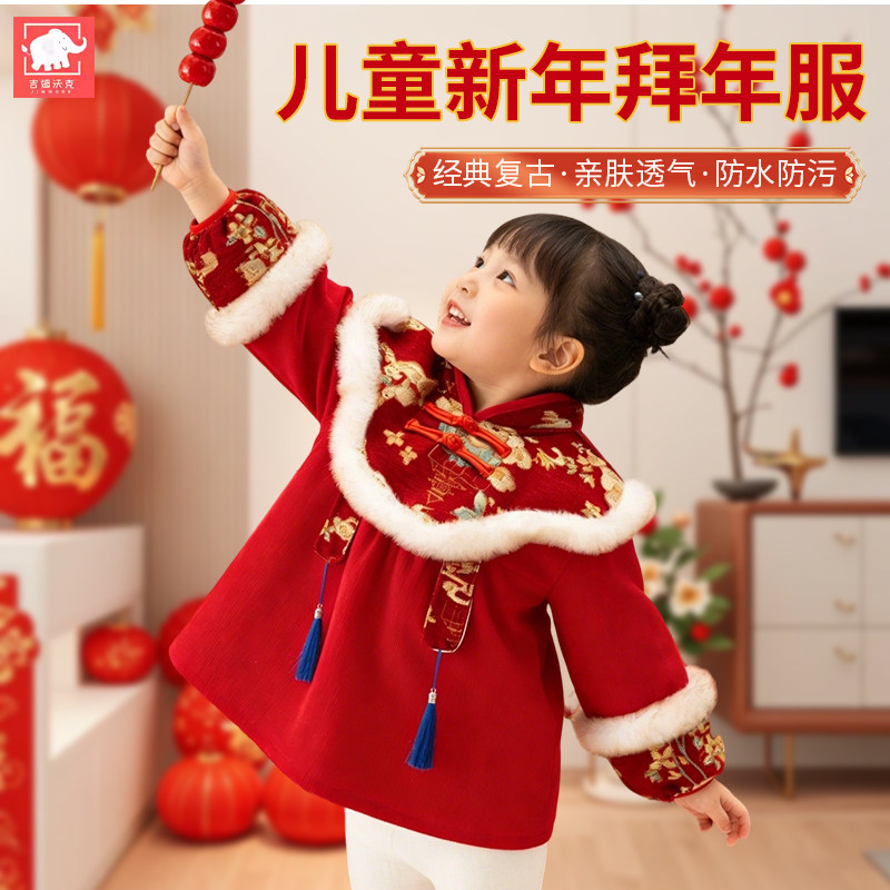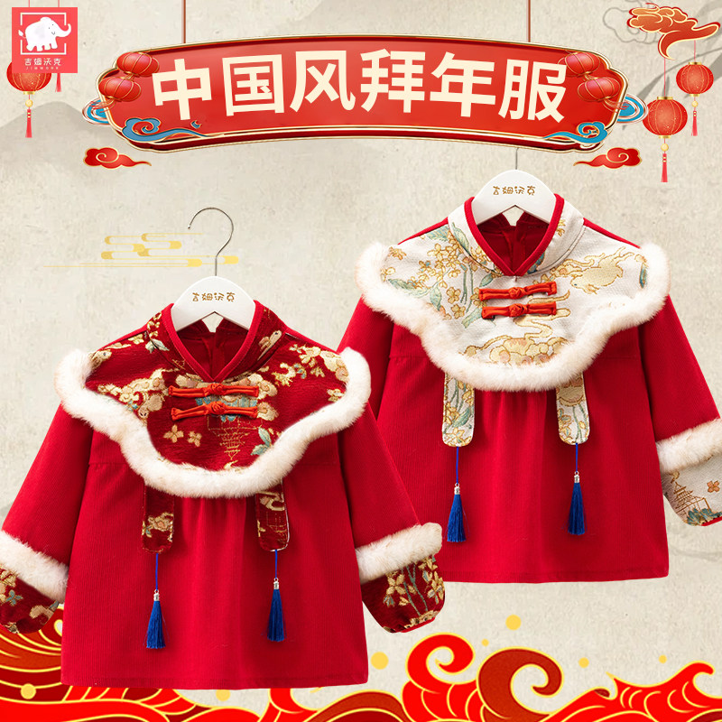 国风宝宝罩衣防水防脏洋气外穿唐装拜年服男女婴儿吃饭围兜反穿衣