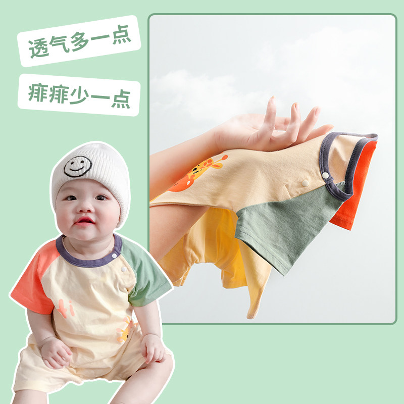 婴儿连体衣A类衣服短袖夏季薄款男女宝宝夏装超萌纯棉透气包屁衣