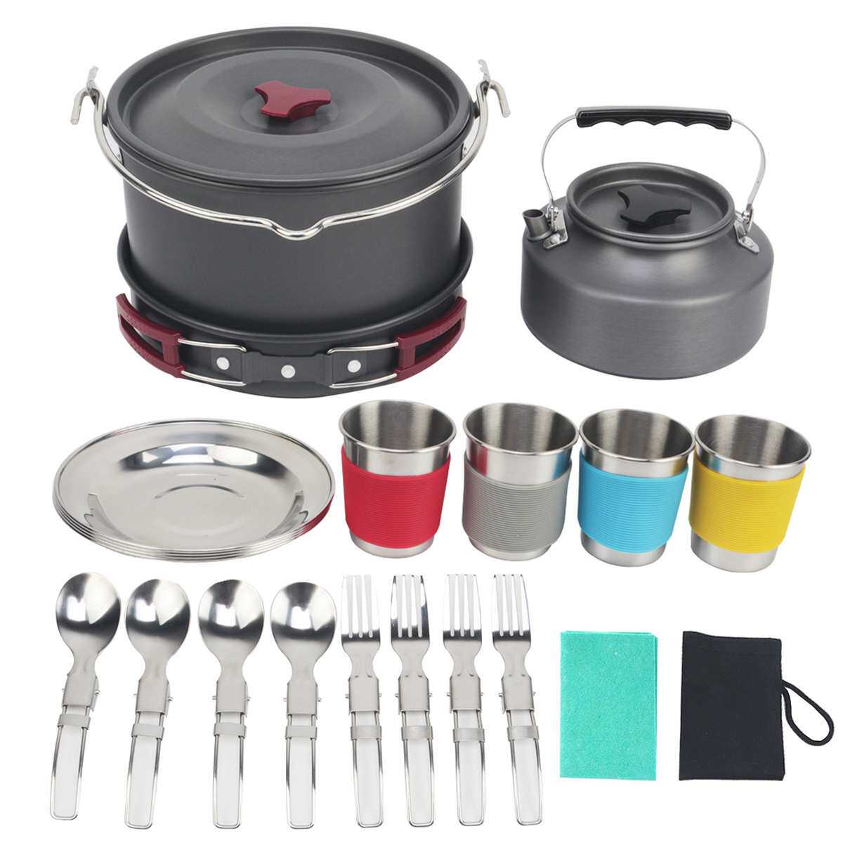 现货跨境野营野炊套锅 套装新品露营炊具炉铝锅户外用品亚马逊