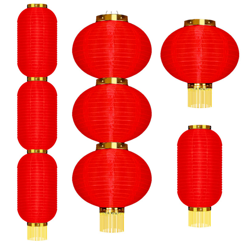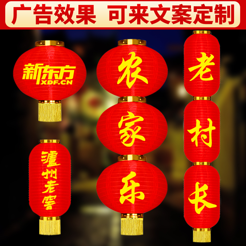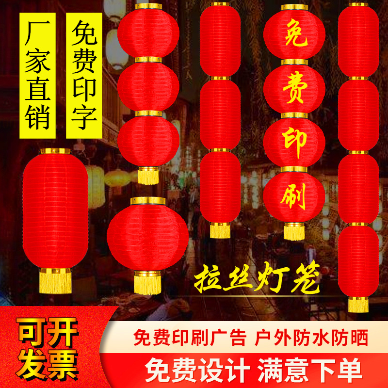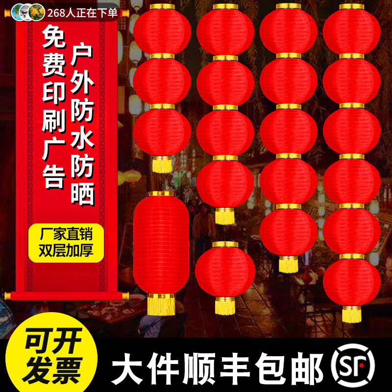 小灯笼串户外连串挂饰大红植绒灯笼节日喜庆装饰元旦场景布置灯笼