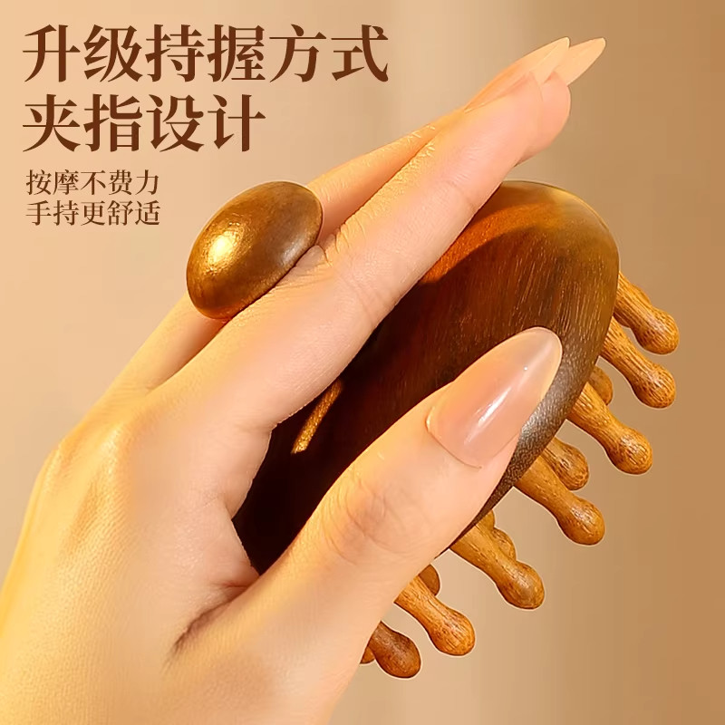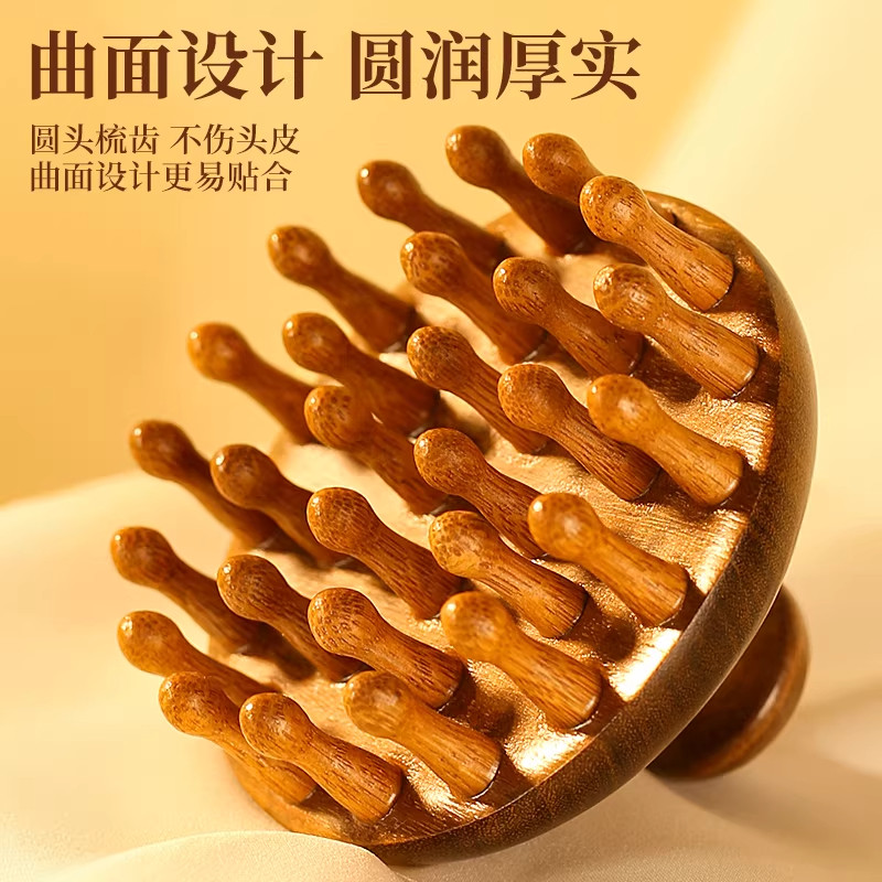 檀木圆盘按摩梳头部头皮经络梳毛囊梳头神器便携梳子女士官方正品