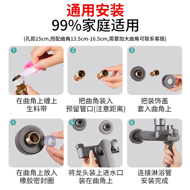 通用型全铜冷热淋浴龙头电热水器混水阀暗装三联浴缸龙头花洒套装