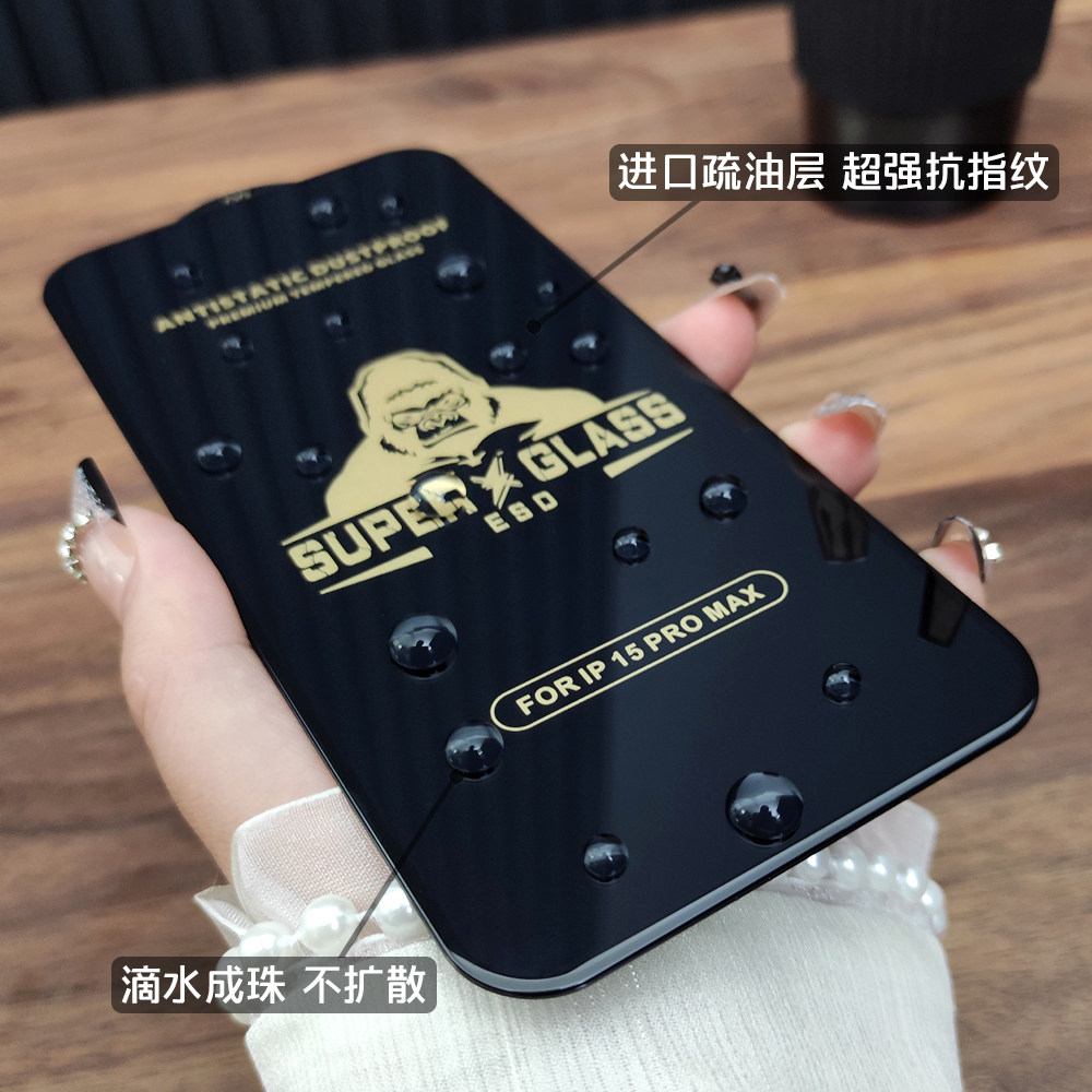 适用苹果17钢化16玻璃膜15抗指纹iphone14promax钻石膜13/XSMAX黑金刚大弧全屏12防尘XR高清11防偷窥
