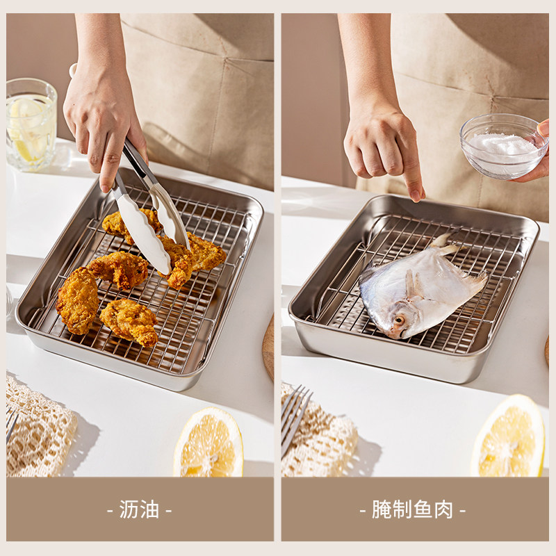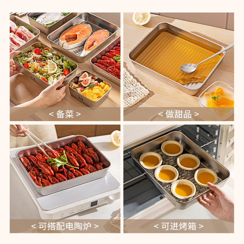 摩登主妇304食品级不锈钢备菜盘长方形盘子家用保鲜盒火锅配菜盘