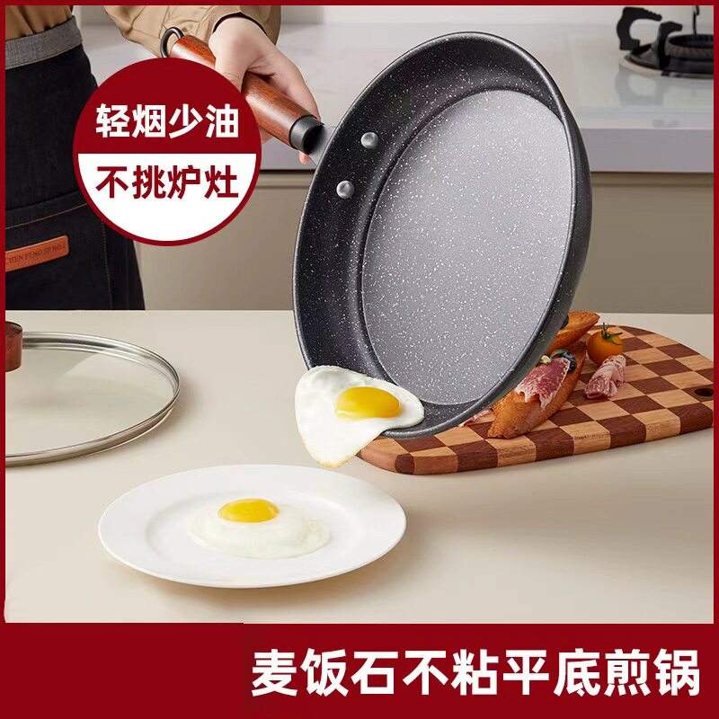 钛红芯控温平底锅不粘锅家用无涂层炒菜煎蛋牛排电磁炉专用深煎锅
