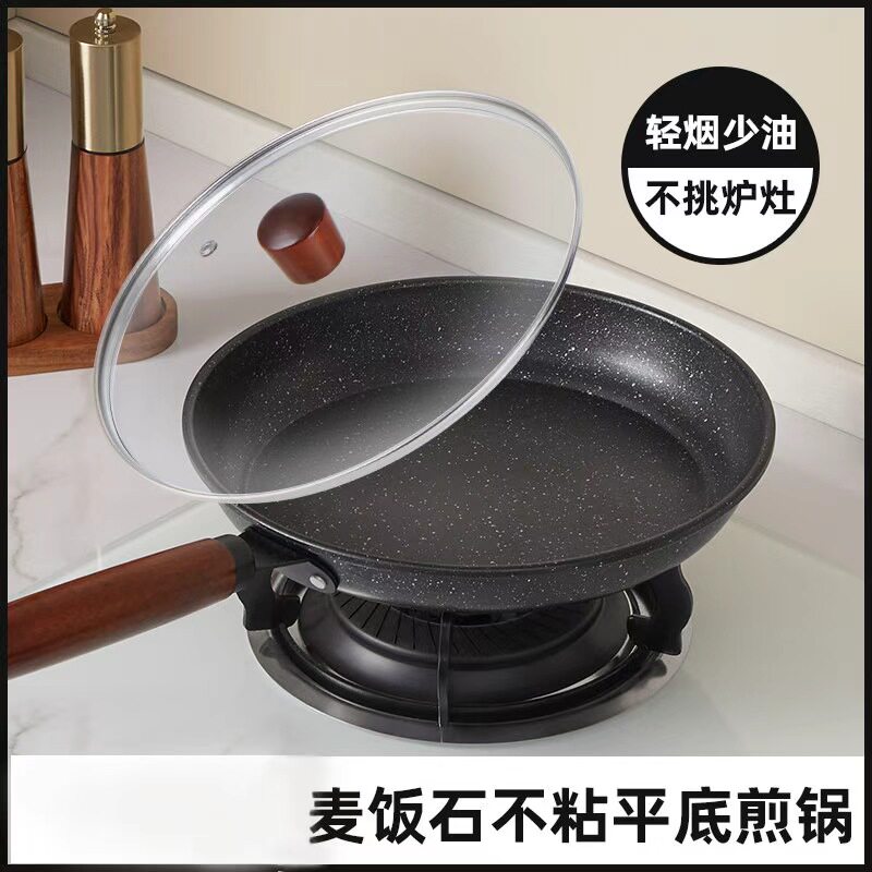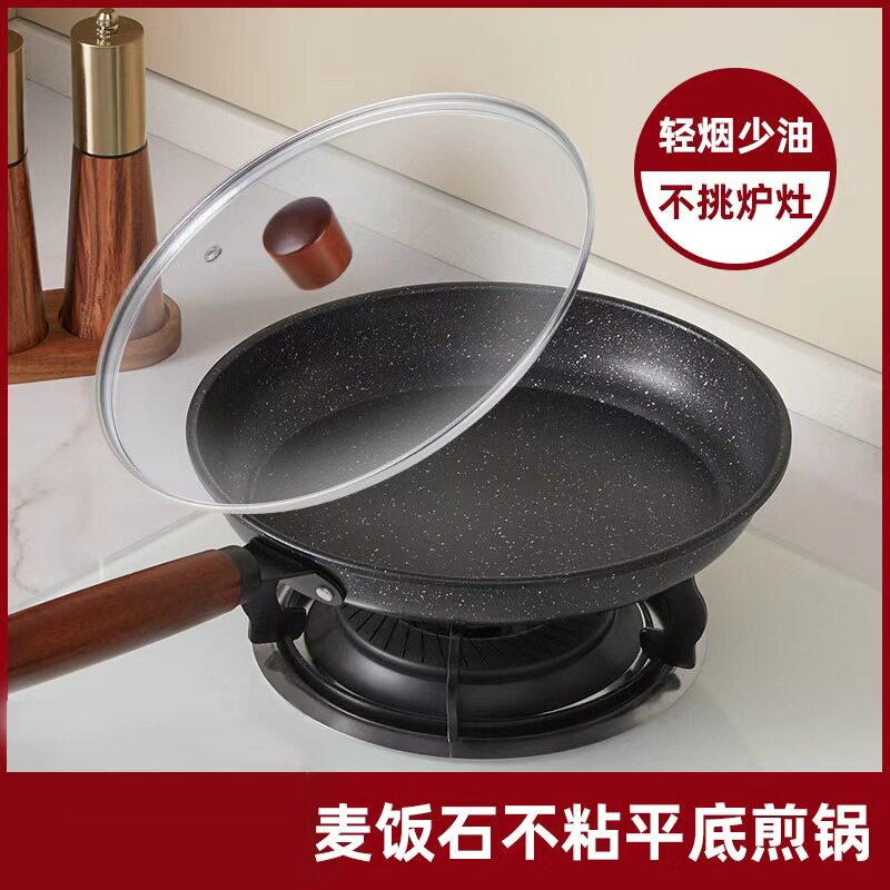 好管家麦饭石不粘锅24cm带盖家用平底锅多规格
