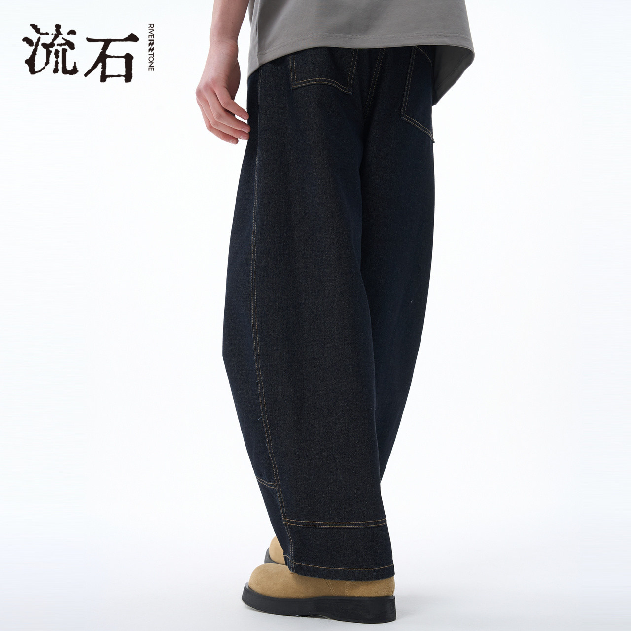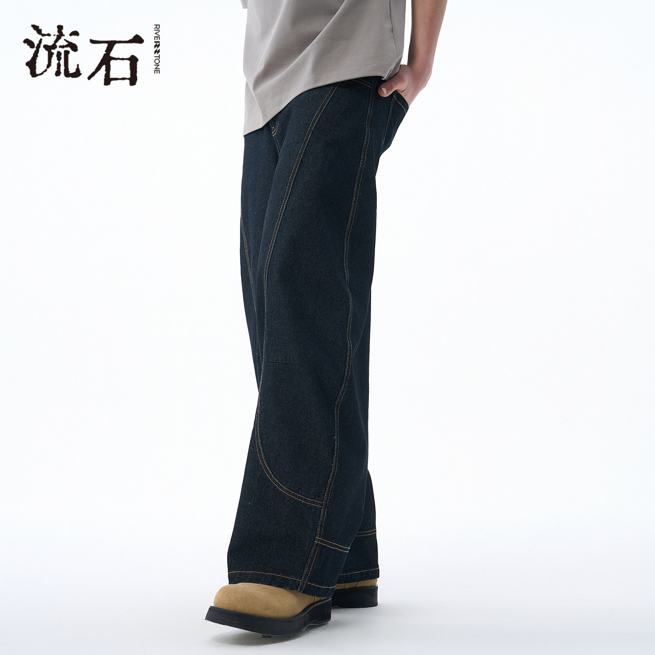 流石男装时尚弯刀牛仔长裤2026年春秋季新款男士美式风宽松阔腿裤