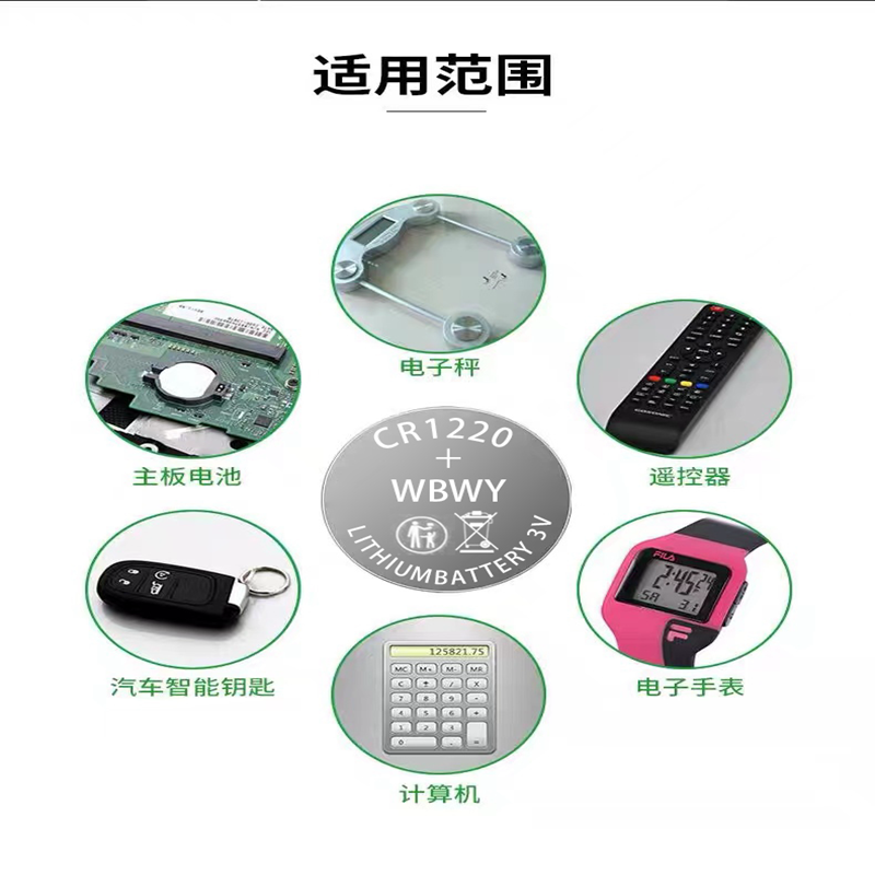 CR1220纽扣电池3V电子手表汽车钥匙遥控器计算器小夜灯录像机主板