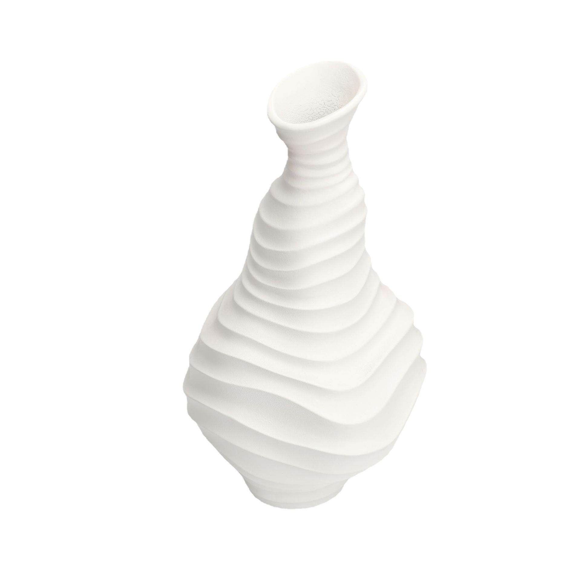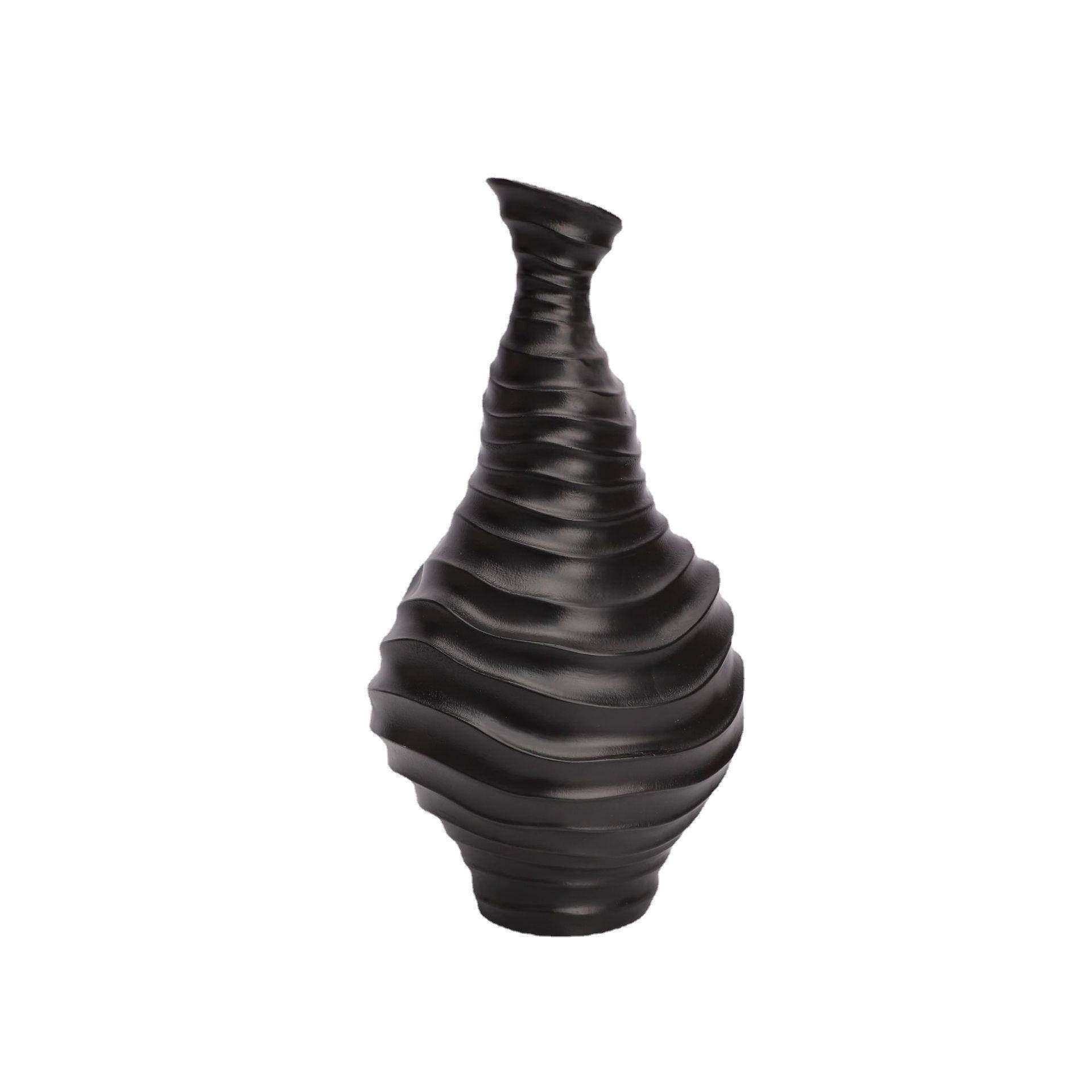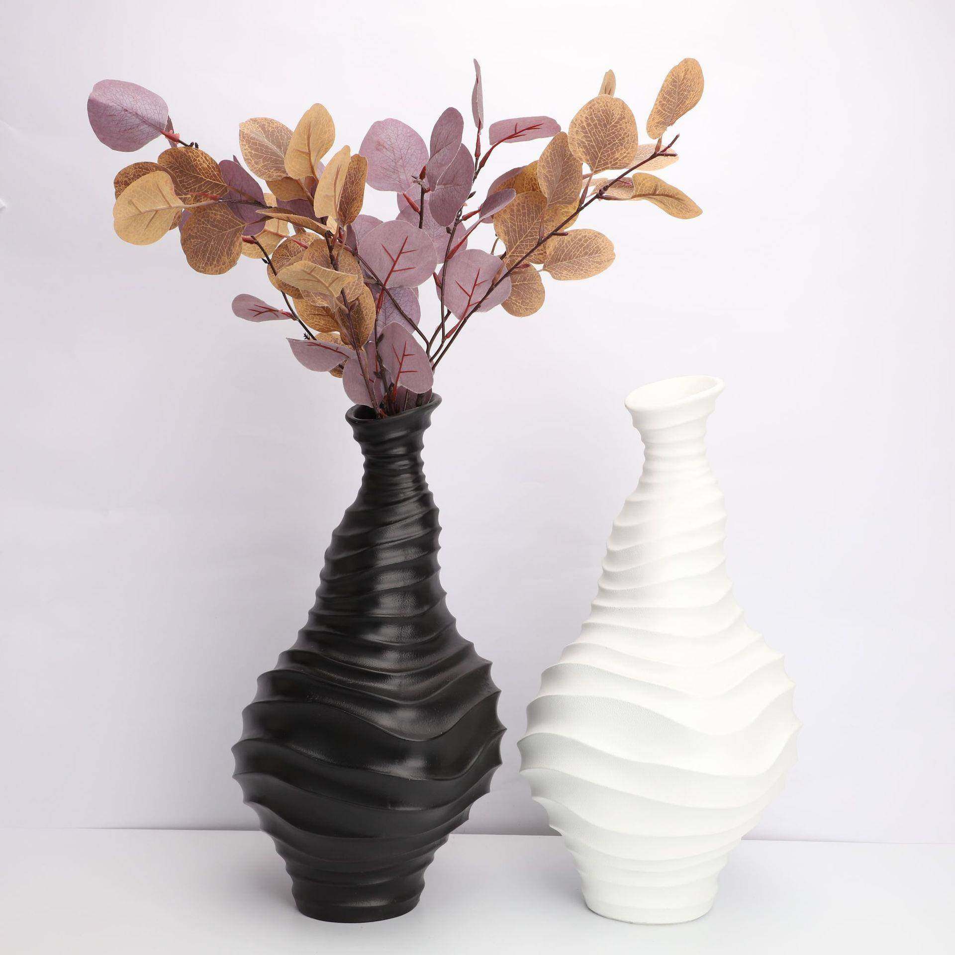 现代简约黑白细口螺纹花器样板间酒店部书房茶几客厅软装饰品摆件