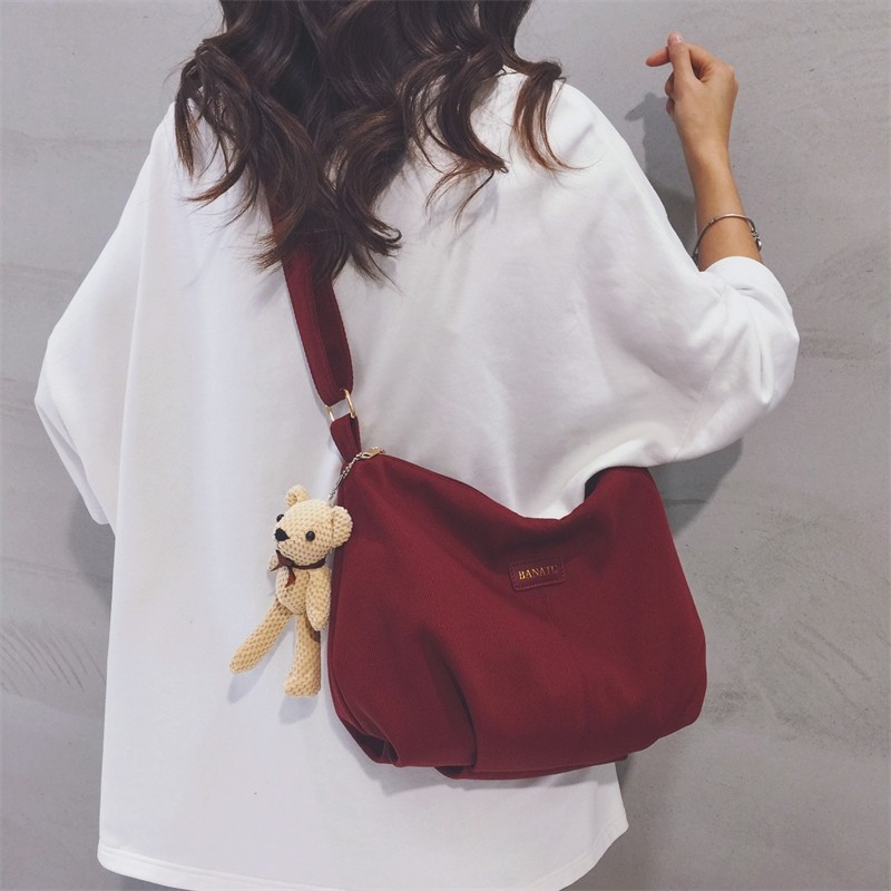 酒红色帆布包女2025新款上班通勤休闲饺子包大学生上课单肩斜挎包