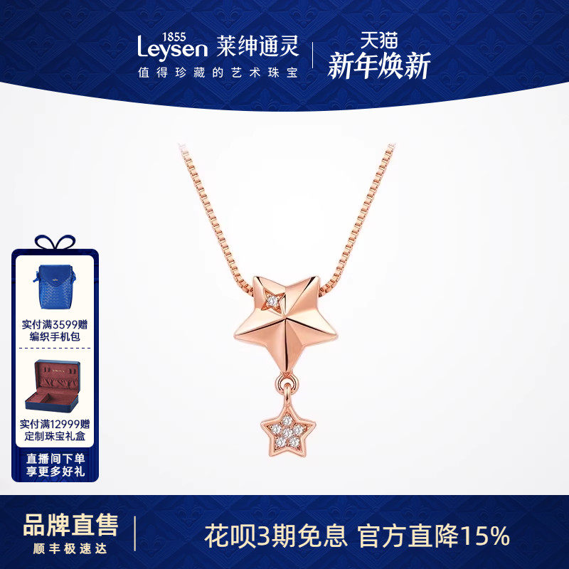 【新年礼物】莱绅通灵 星芒 18K金钻石吊坠 钻石项链女 锁骨链