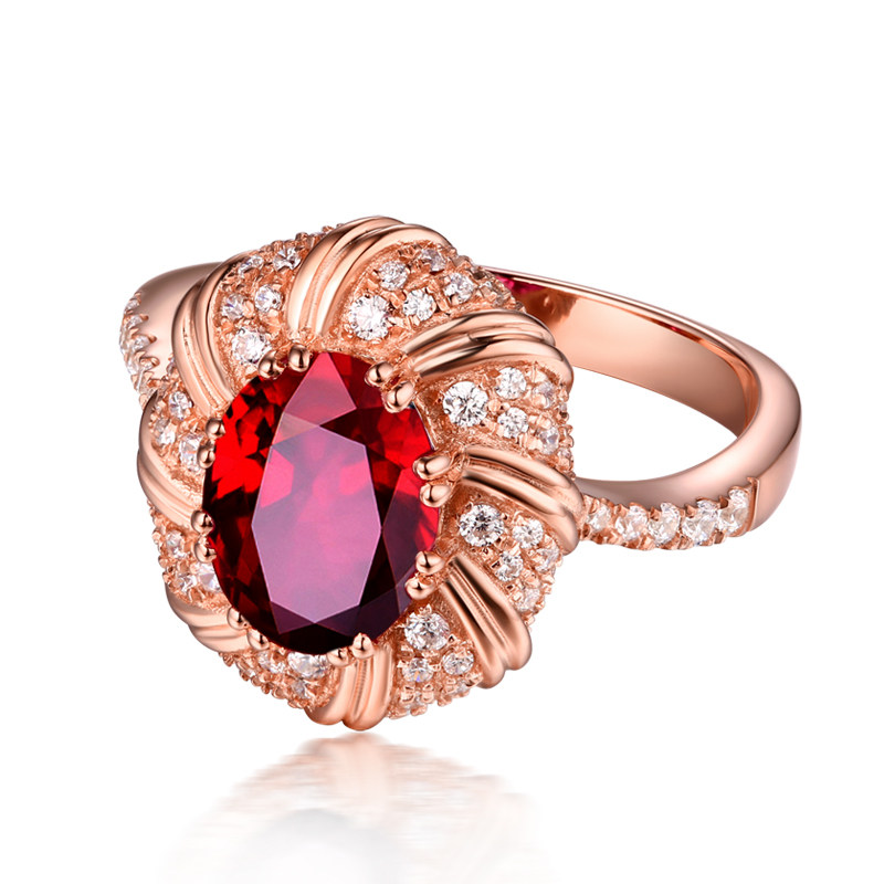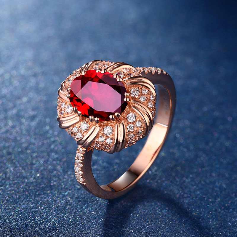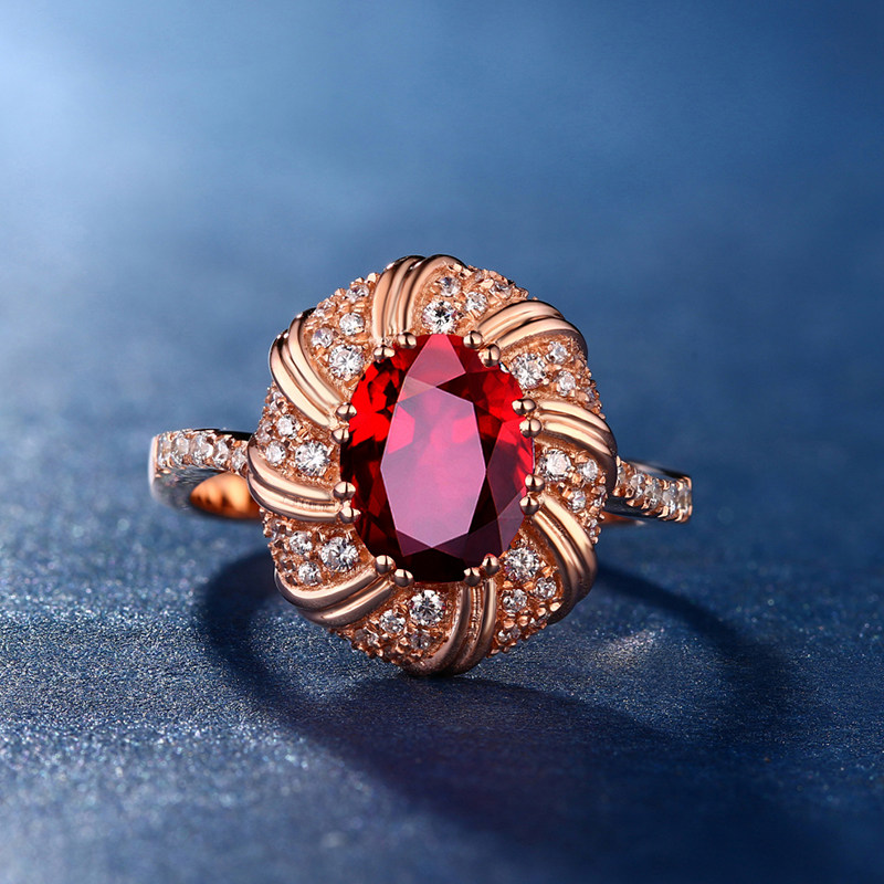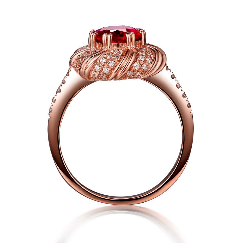 蜜安琪 1克拉鸽血红天然红宝石戒指女 18k玫瑰金镶嵌钻 彩宝定制