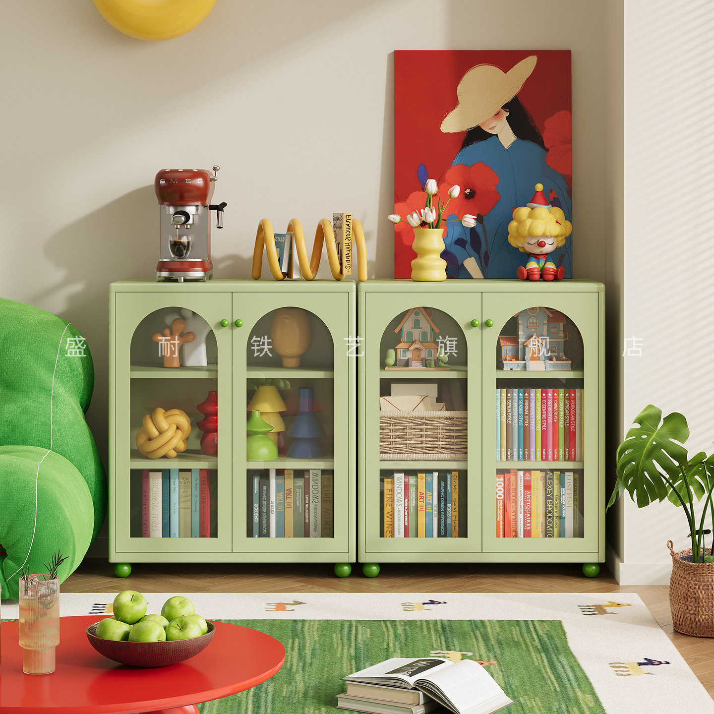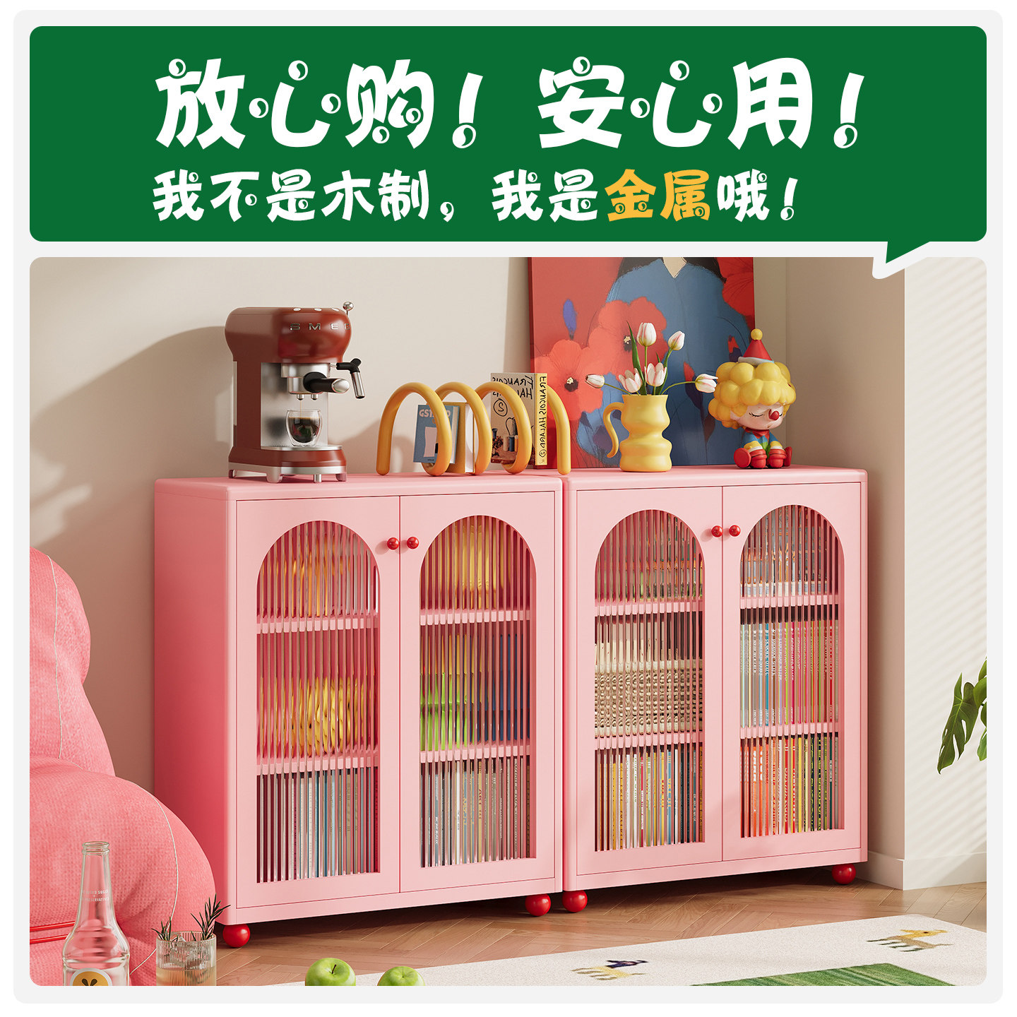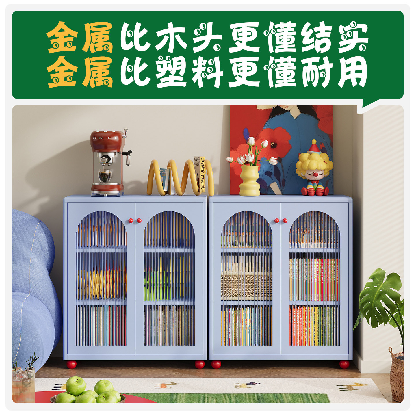 钢制书柜儿童玻璃带门防尘玩具柜家用客厅靠墙铁皮柜储物柜置物架