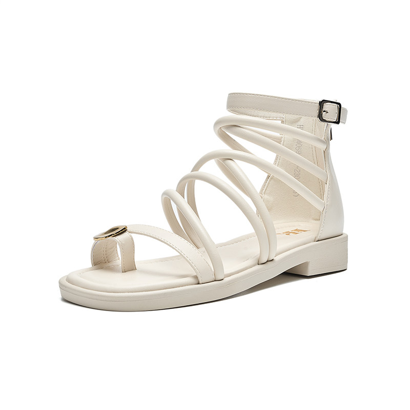 HR赫莲娜女鞋子2026年夏季新款中帮金属扣小众时尚罗马凉鞋配裙子