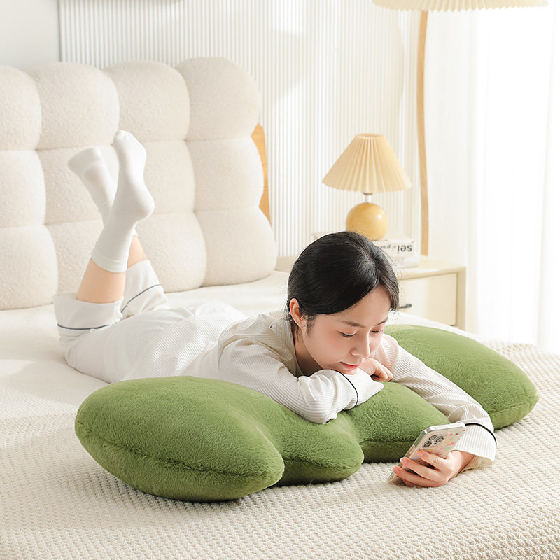 奶油风腰枕长方形沙发靠垫卧室床头客厅雪尼尔绿色沙发抱枕靠枕套