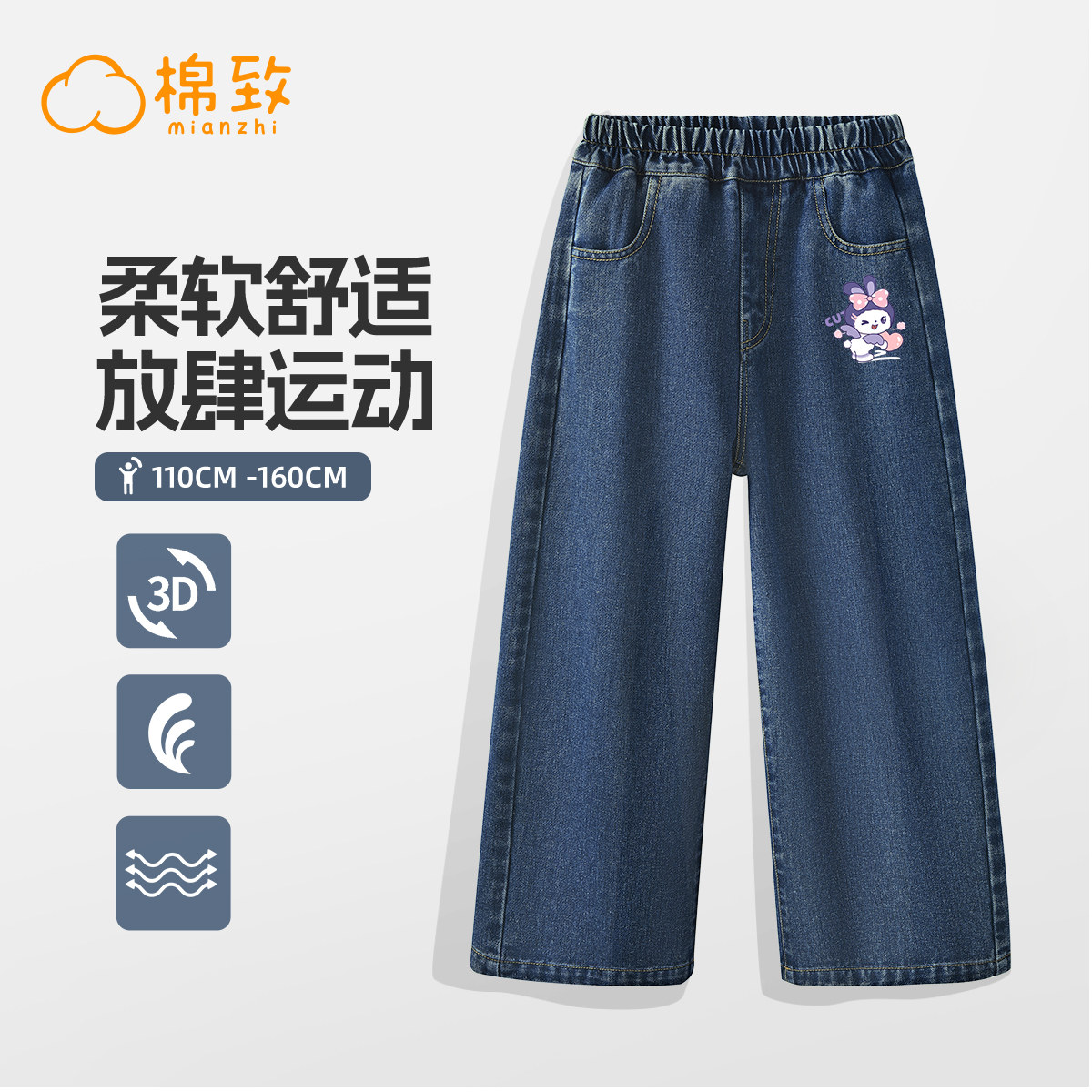 棉致童装女童牛仔裤2025新款秋季洋气时髦阔腿裤女孩裤子儿童秋装