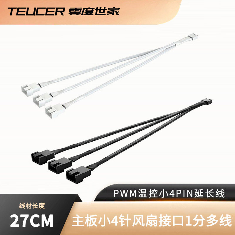 主板小4Pin风扇集线器延长扩展4pin串联转接线电脑机箱pwm白色