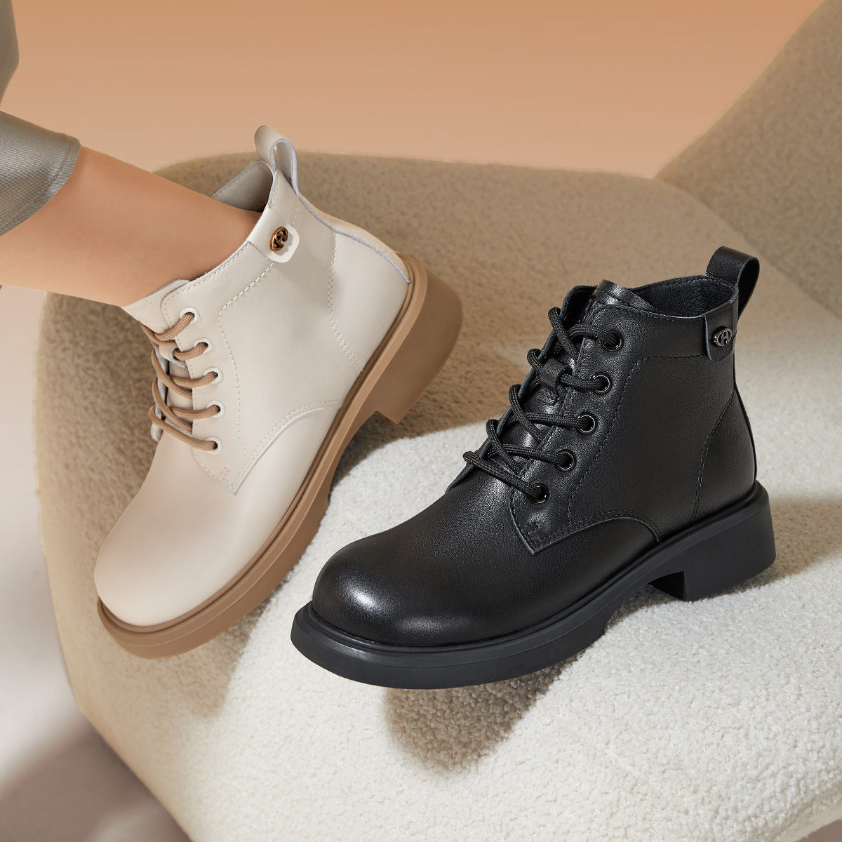骆驼女鞋秋冬英伦风粗跟时装靴通勤百搭骆驼马丁靴女厚底