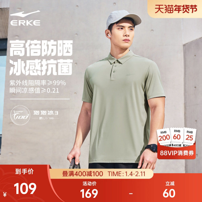 鸿星尔克短袖男2025夏季新款男士冰丝防晒polo衫运动t恤爸爸男装