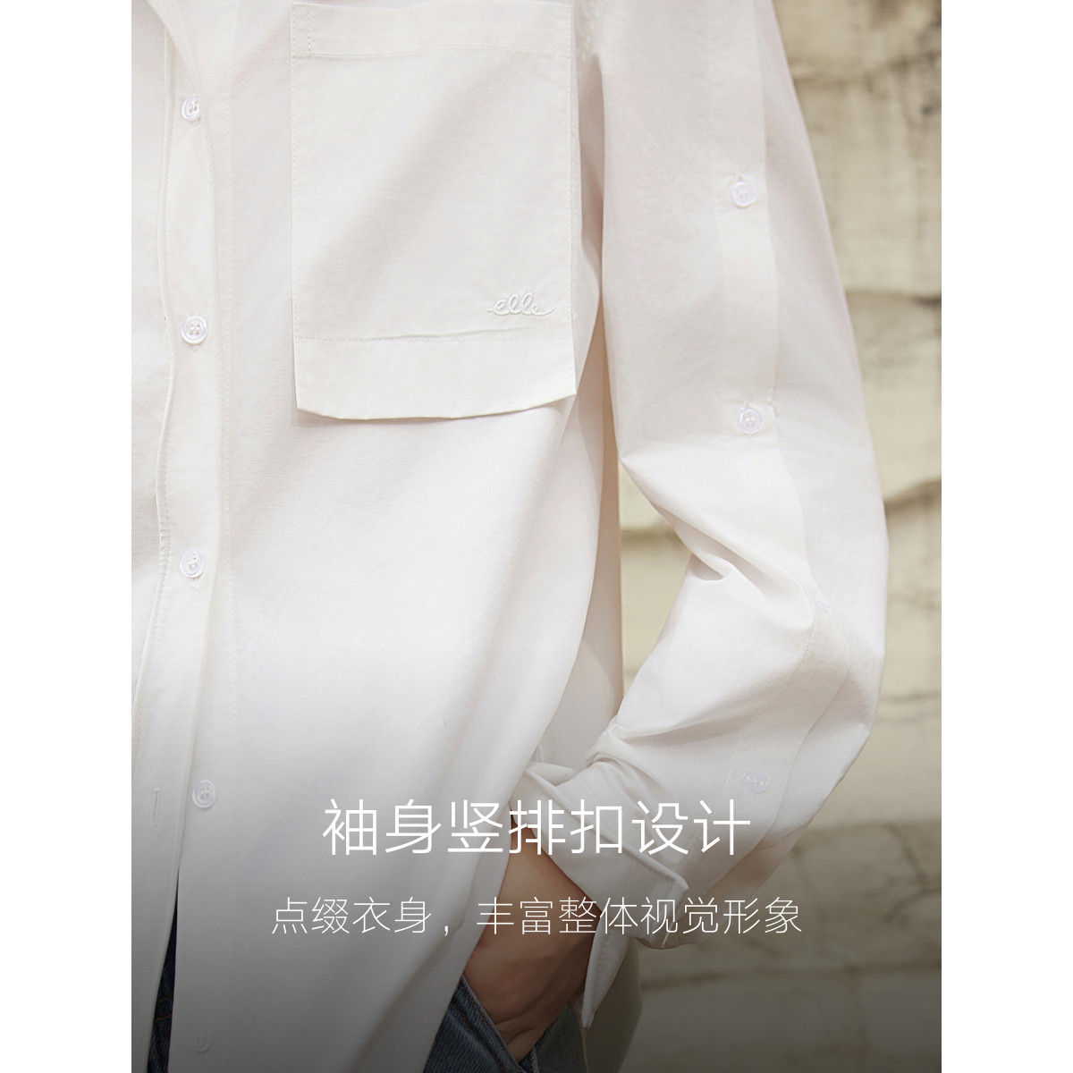 ELLE白色优雅通勤衬衫女2025秋季新款纯棉简约休闲翻领法式衬衣