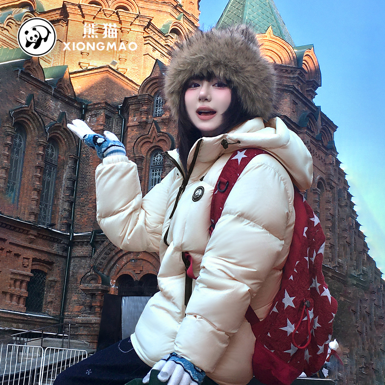 圣诞礼物骆驼熊猫泡泡户外羽绒服女冬短款保暖好看面包服奶茶棕男