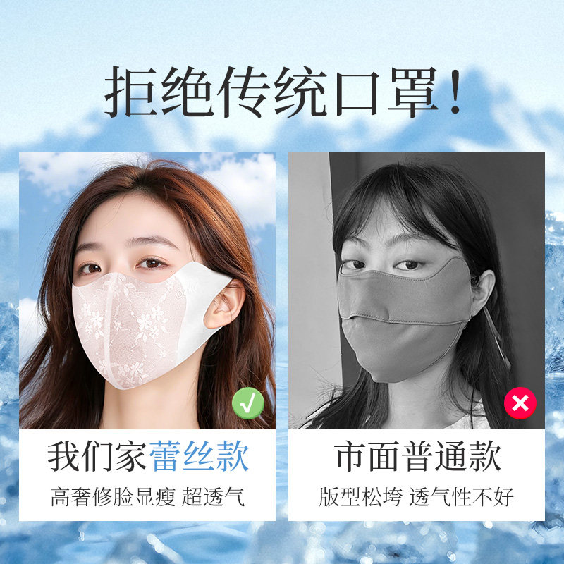 蕾丝防晒口罩女春夏薄款防紫外线遮阳骑行电动车时尚网纱遮脸面罩