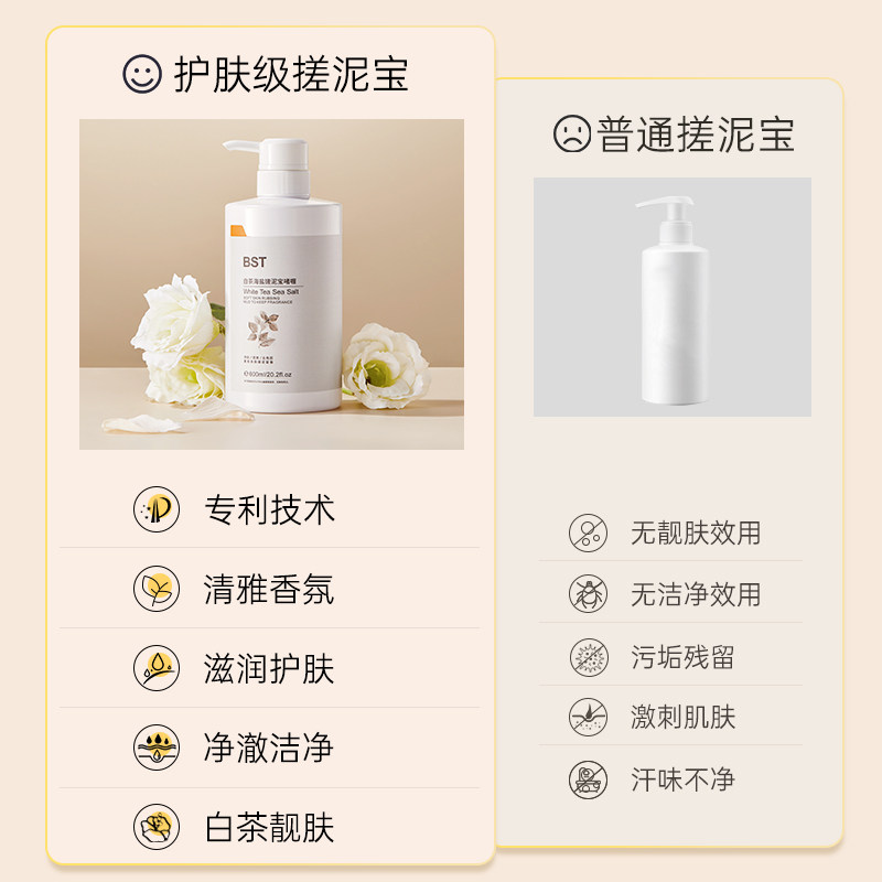 白茶海盐搓泥宝男女士全身清除肌肤表层多余油脂污垢死皮搓澡澡堂